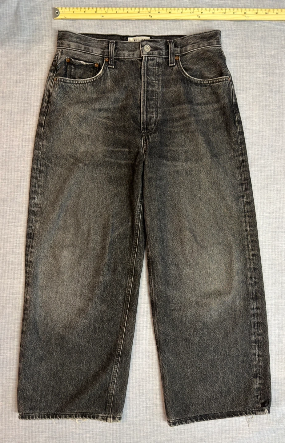 Selling a pair of AGOLDE denim pants. They are a size 25 and in good condition. The inseam is approximately 26 inches and the rise is approximately 12 inches. Perfect for a casual look!