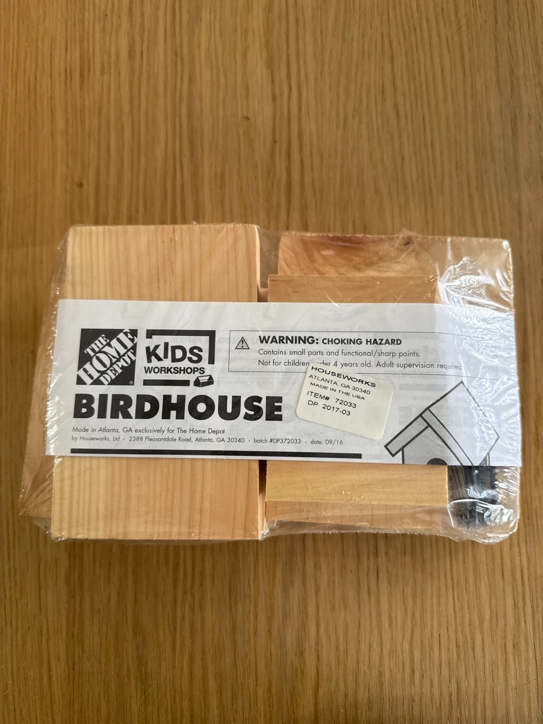 Selling a brand new Home Depot Kids Workshops Birdhouse kit! It contains small parts and may have functional/sharp points, so adult supervision is required. Great for a fun project!