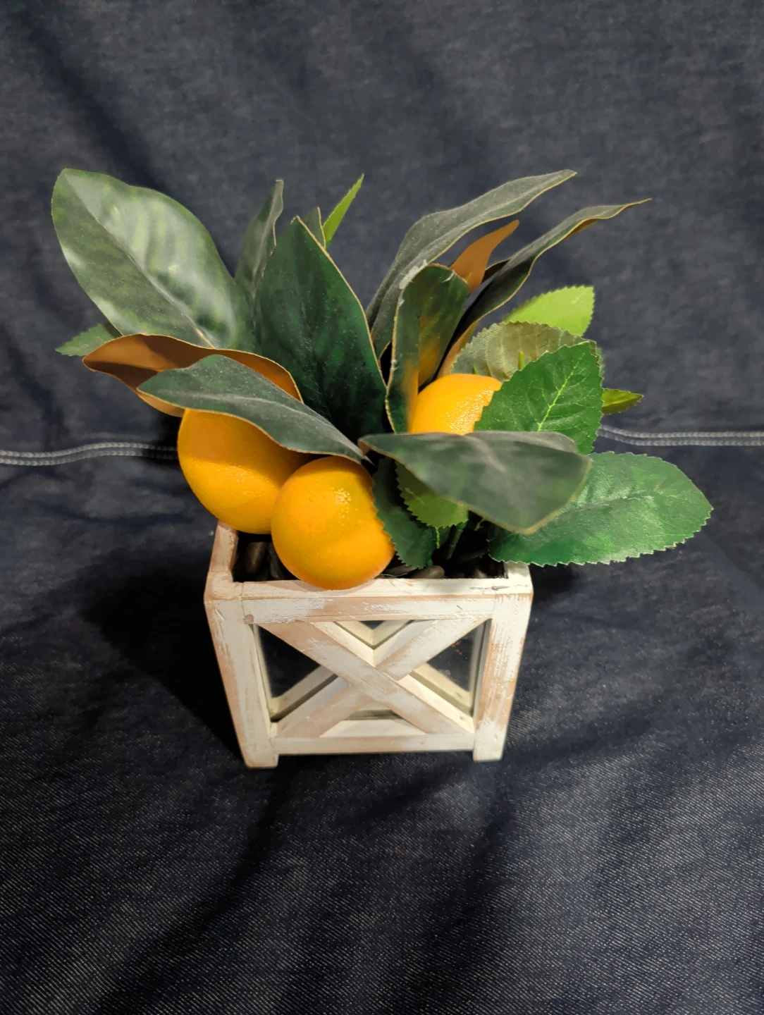 Faux Lemon Plant in Wood Box