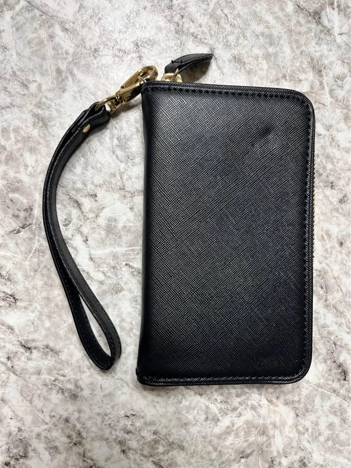 Adorable unused black & gold Aldo wristlet. Has two main compartments, two slots, and three card holders. Removable wrist strap. 6” x 4.5” x 1”. Pickup Belleville.