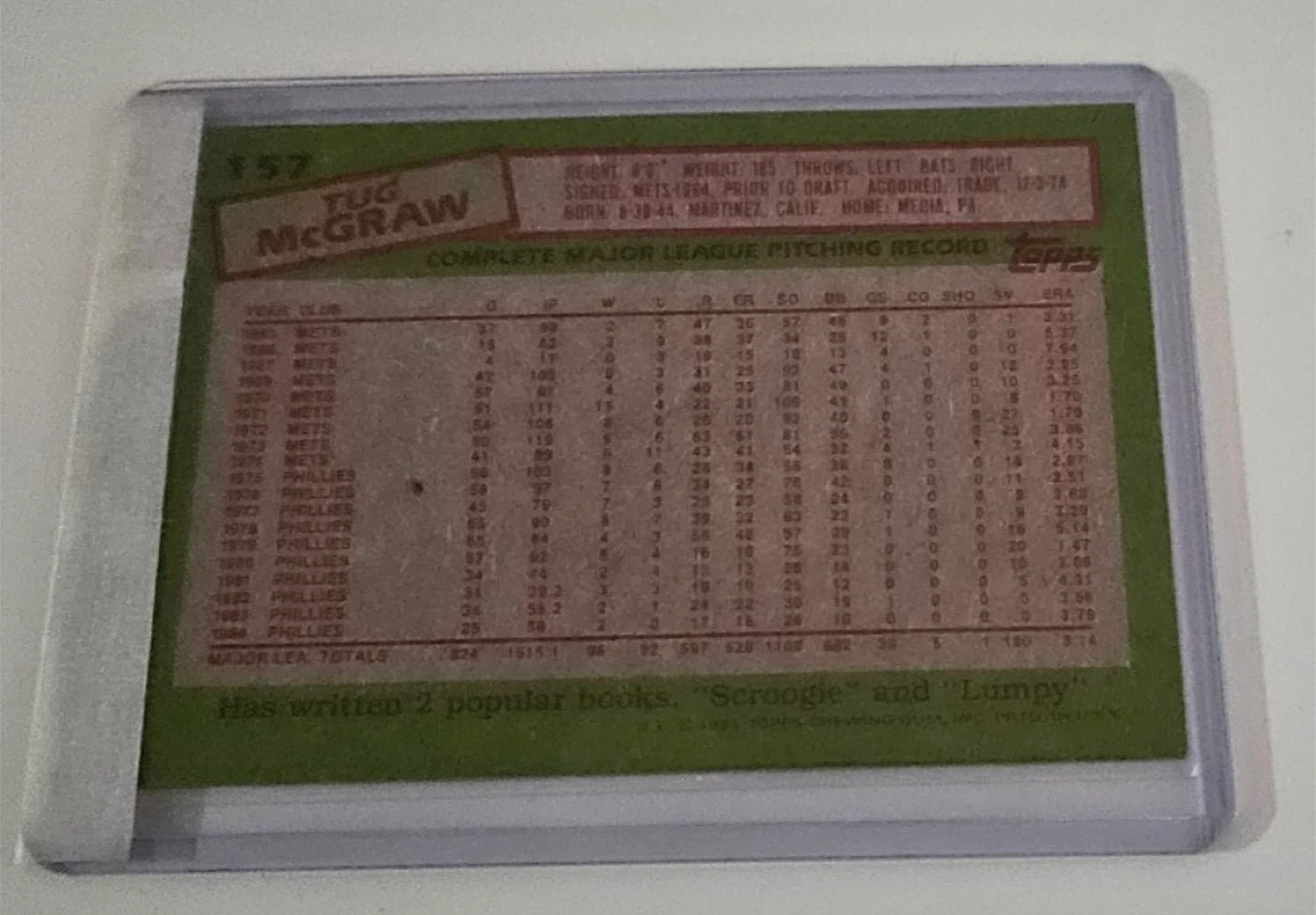 1985 Topps TUG MCGRAW, PHILLIES, Autographed Card