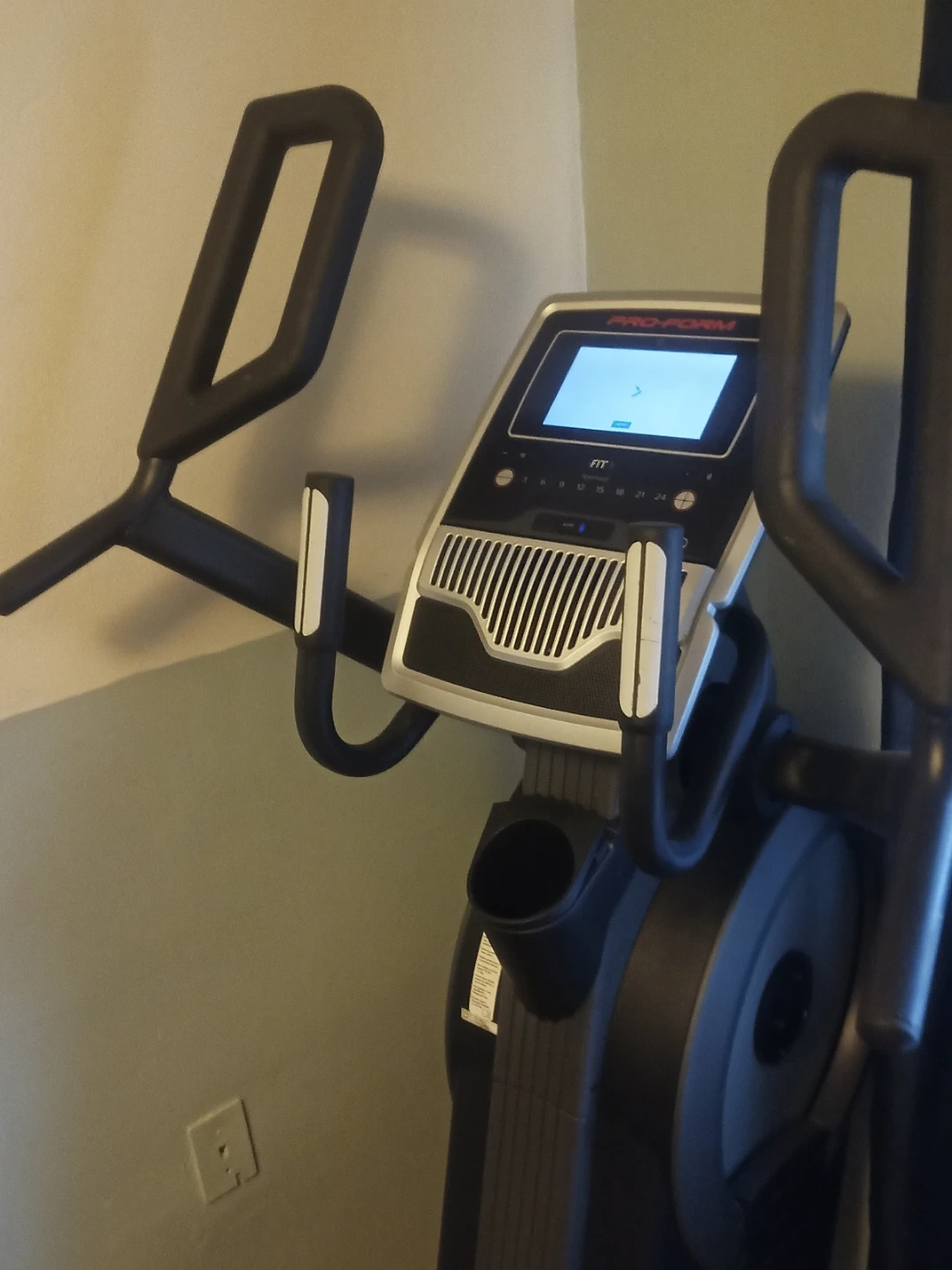 This ProForm elliptical trainer offers multiple resistance levels for a great workout. It has a digital display for tracking progress. Suitable for home gym use. In perfect shape !