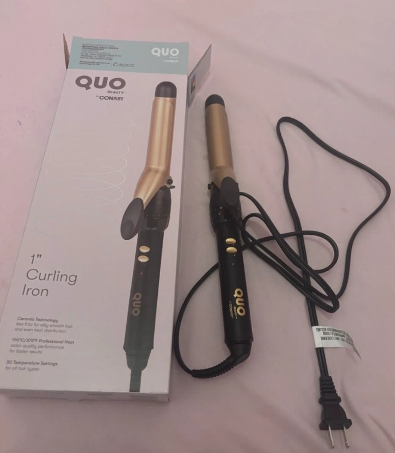This QUO Beauty curling iron by Conair features ceramic technology for less frizz and even heat distribution. It offers professional heat at 190°C/375°F for faster results. It has 30 temperature settings, suitable for all hair types.