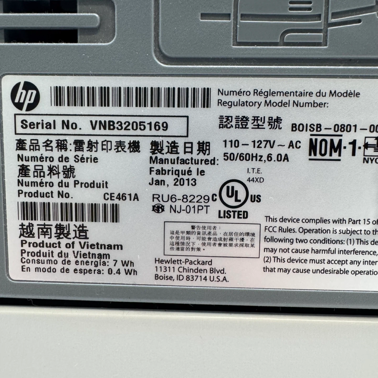 This is a used HP LaserJet P2035 monochrome laser printer, manufactured in January 2013. The unit powers on and overall is in good cosmetic condition with normal signs of use such as small scratches (see photos).