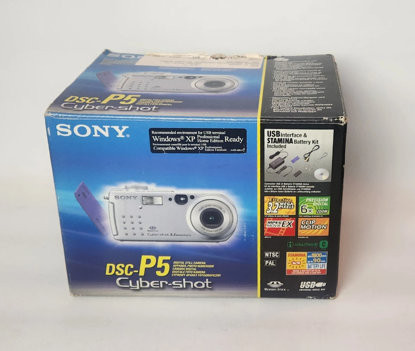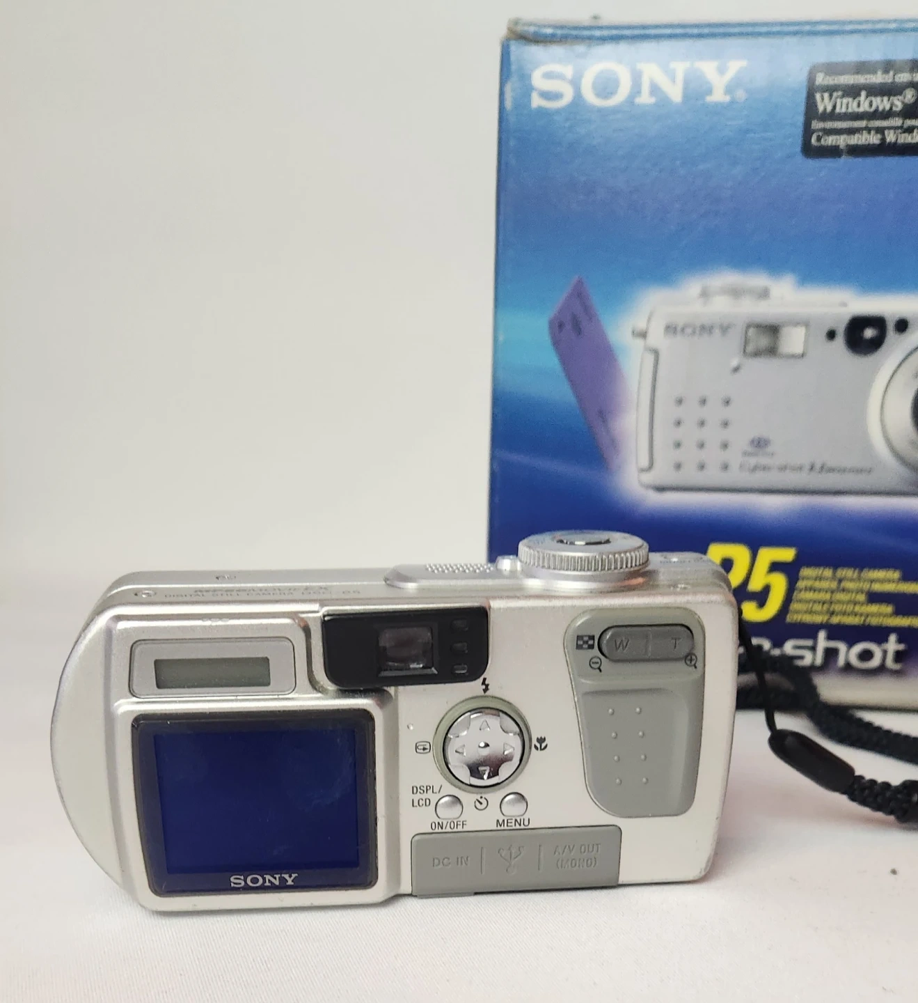 The Sony Cyber-shot DSC-P5 is a compact 3.2-megapixel digital camera released in 2001, featuring a 3x optical zoom, a 1.5-inch LCD screen, and a stylish, lightweight, long-bodied design. It uses the NP-FC10 InfoLithium battery and Memory Stick media. Known for its portability and decent photo quality, it was a successor to the DSC-P1.