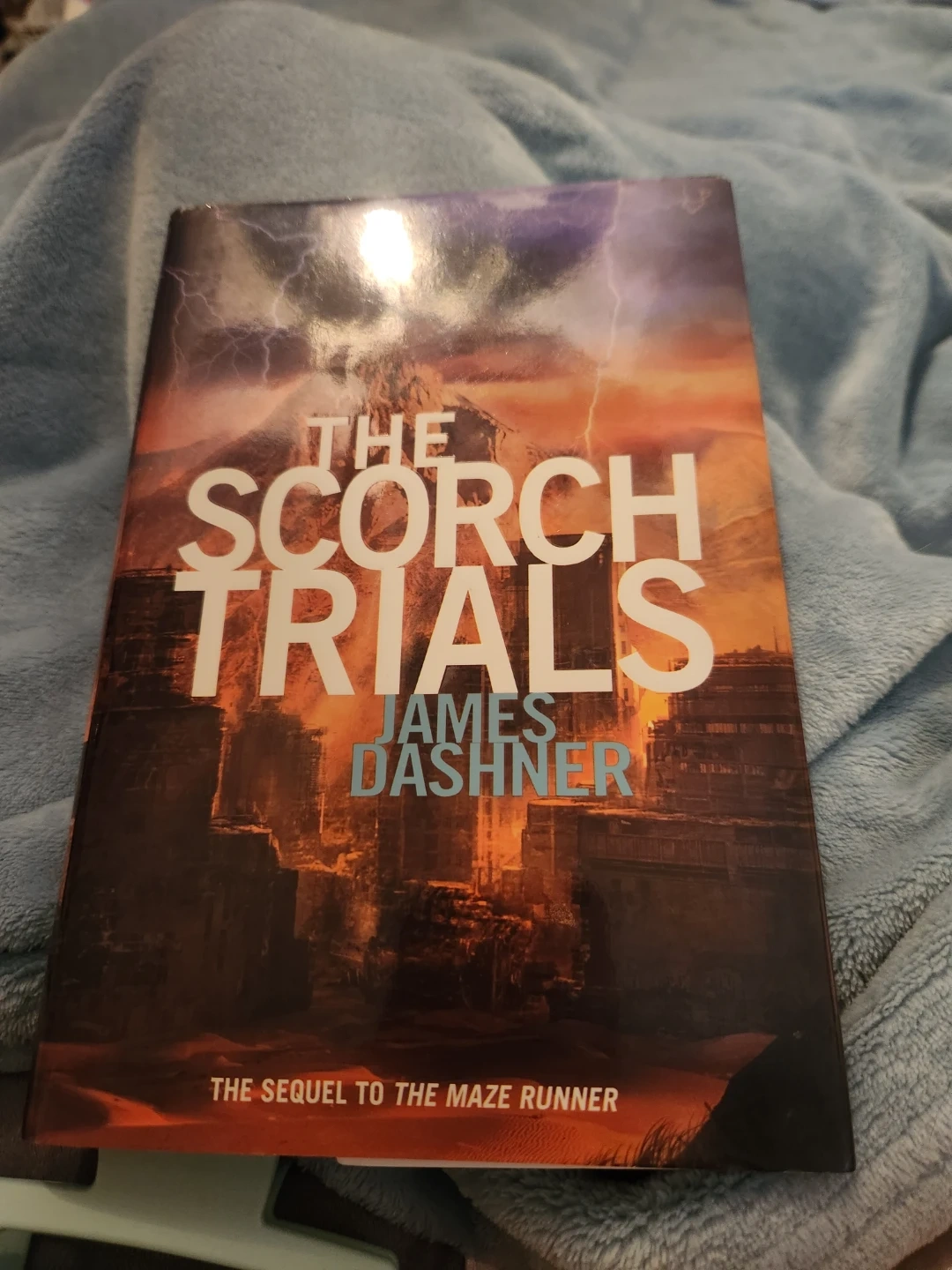 This is 'The Scorch Trials', a paperback book by James Dashner. It's the sequel to 'The Maze Runner'. The story follows Thomas and the Gladers as they face a new brutal climate and deadly infectious disease known as the Flare. If you interested chat with me and I'll give you the meeting spot/my address.