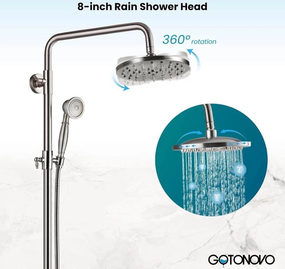 Gotonovo Exposed Shower Faucet Set - 8" Rainfall Head + Handheld