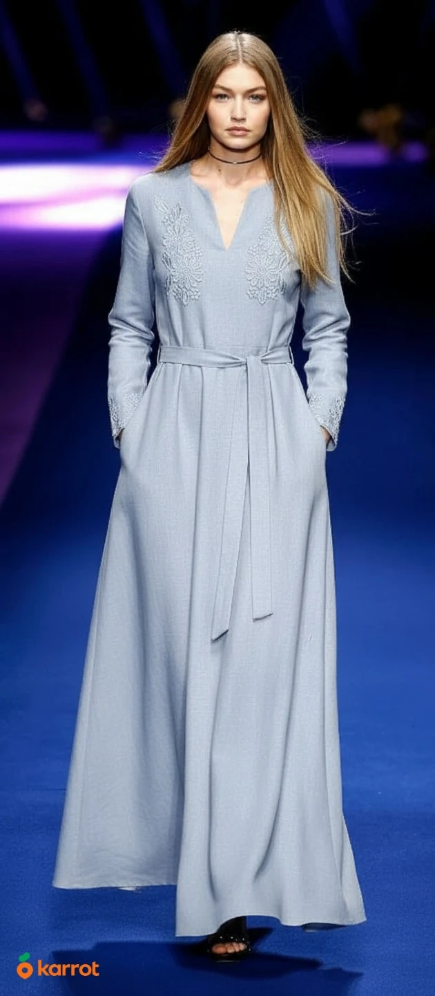 🏆Winter Light Blue Embroidered Maxi Dress