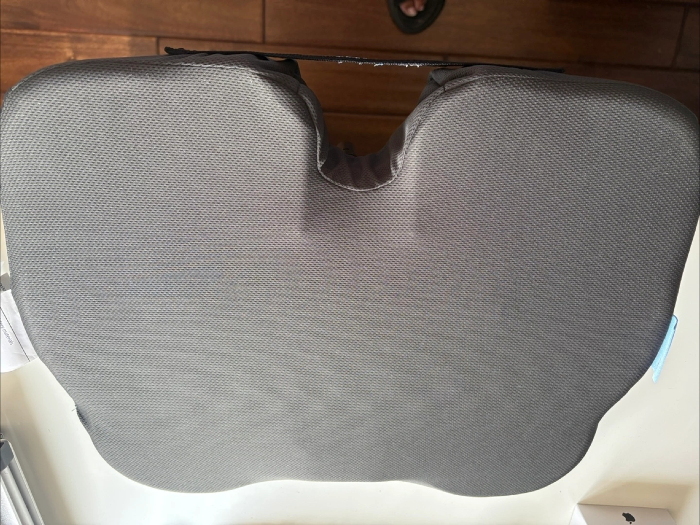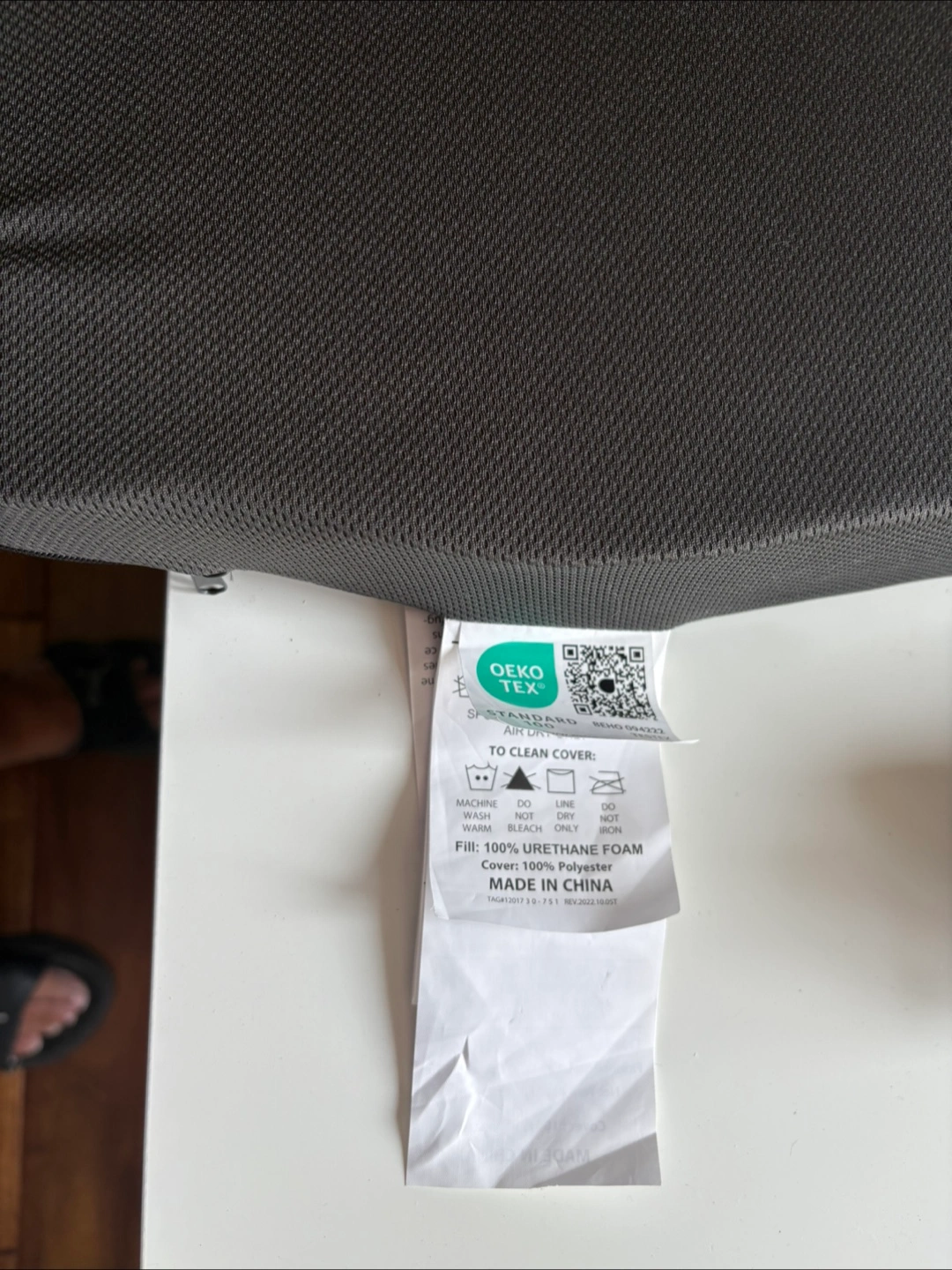 I'm selling a seat cushion in gray! The fill is 100% urethane foam, and the cover is 100% polyester. It's in great condition and ready to provide some extra comfort