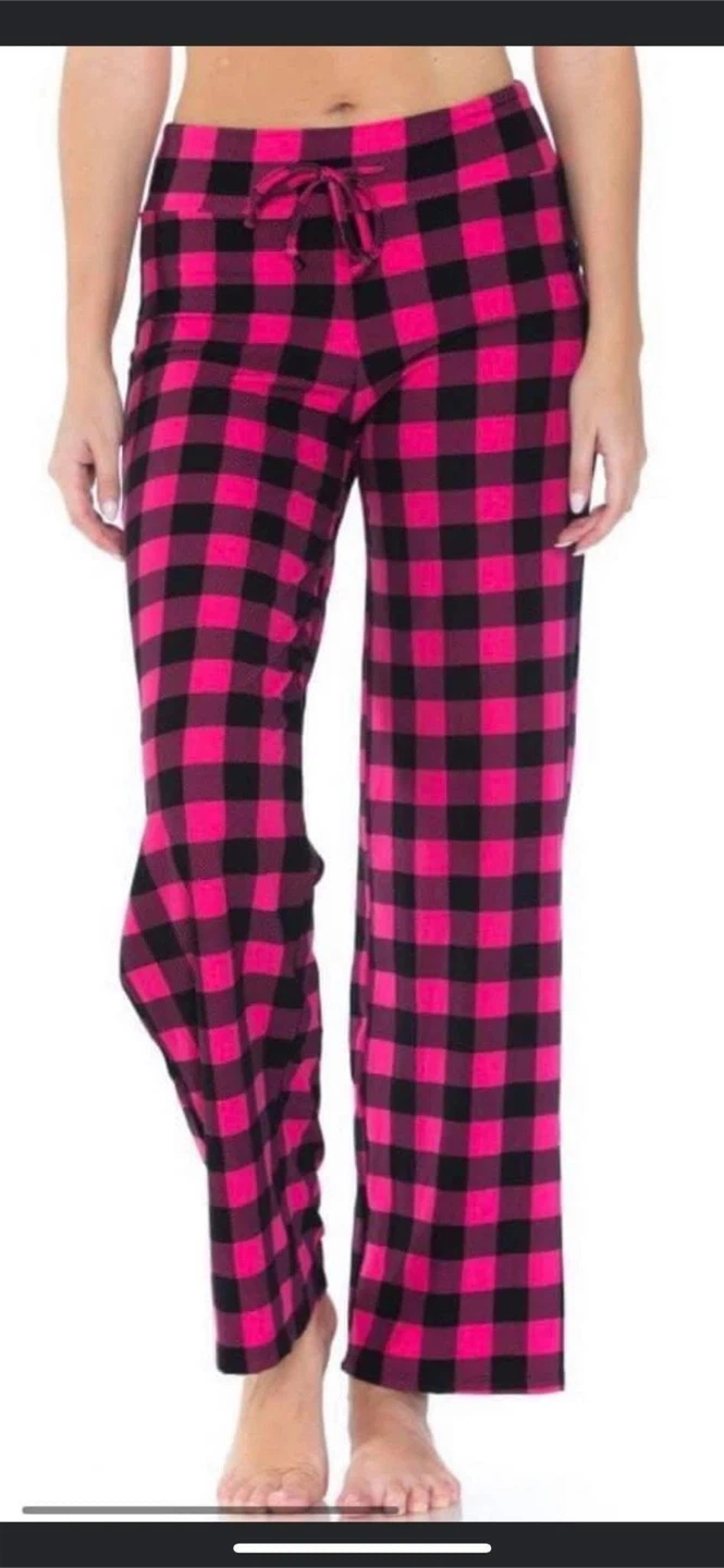 These are a Hot Pink Checker Plaid Loungers! Wide band with Drawstring waist. pj style pants Comfortable, soft