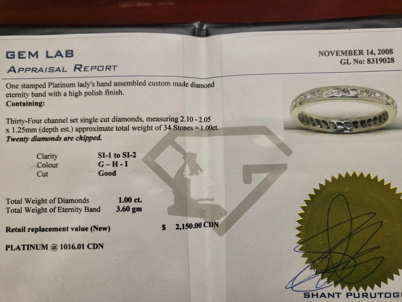 Platinum eternity band Si1 SI2 diamonds size 8 3.6 grams