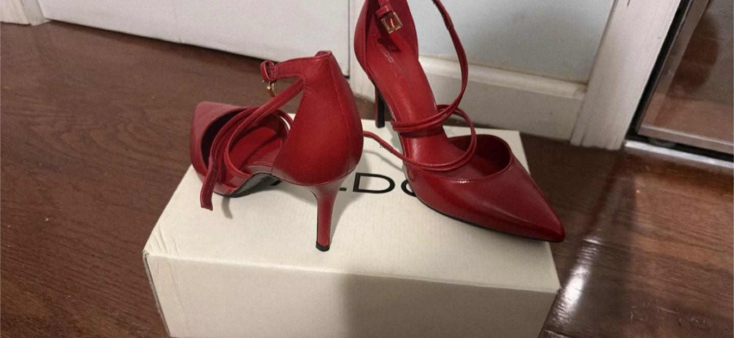 Selling a pair of ALDO heels! One pair is gold and the other is red. Both are a size 7 and come with the original box
