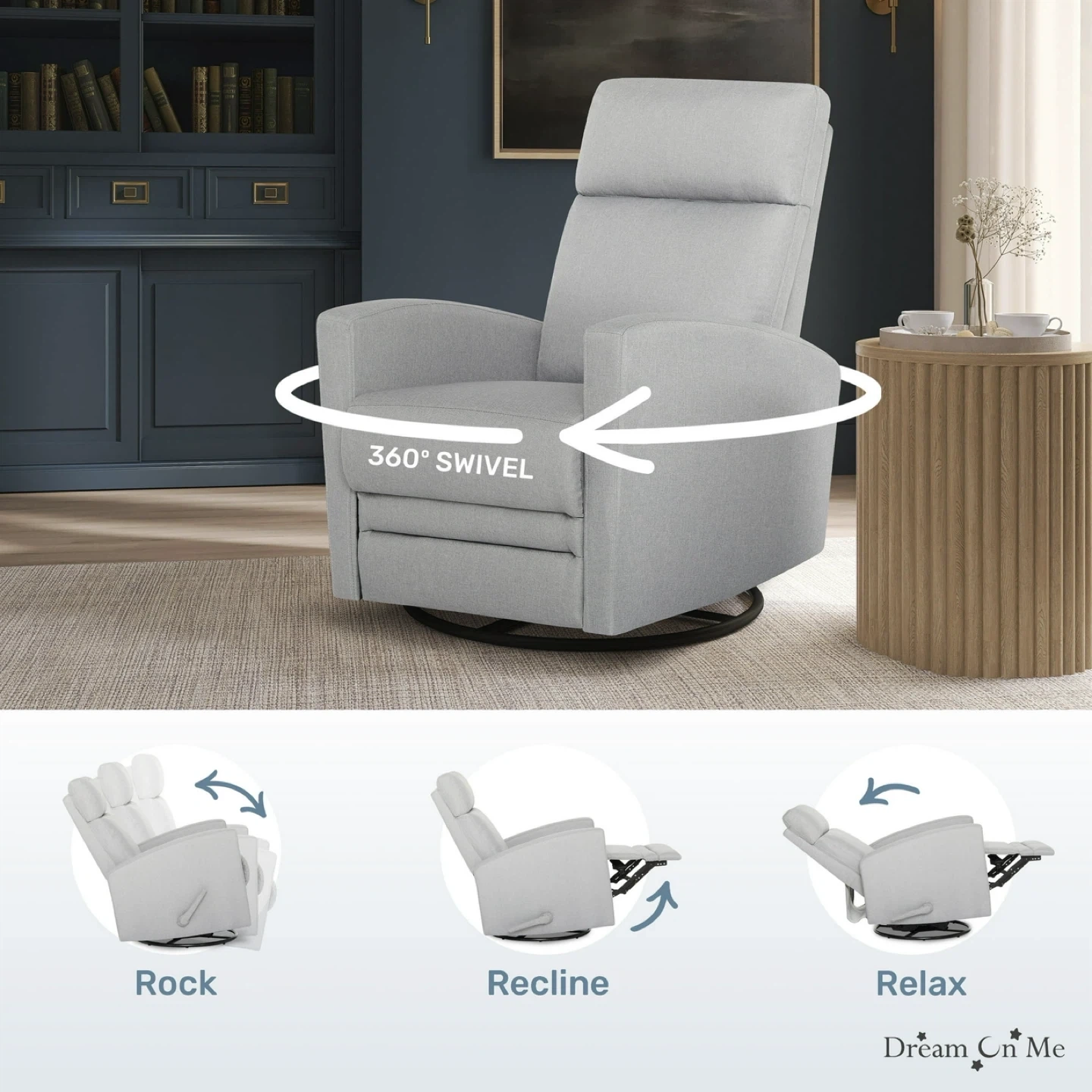 This Dream On Me Chatham Glider Recliner offers 3-in-1 functionality with smooth rocking motions and 360° swivel. It features ergonomic back and lumbar support for maximum comfort. The easy-to-reach recliner handle makes adjustments a breeze.