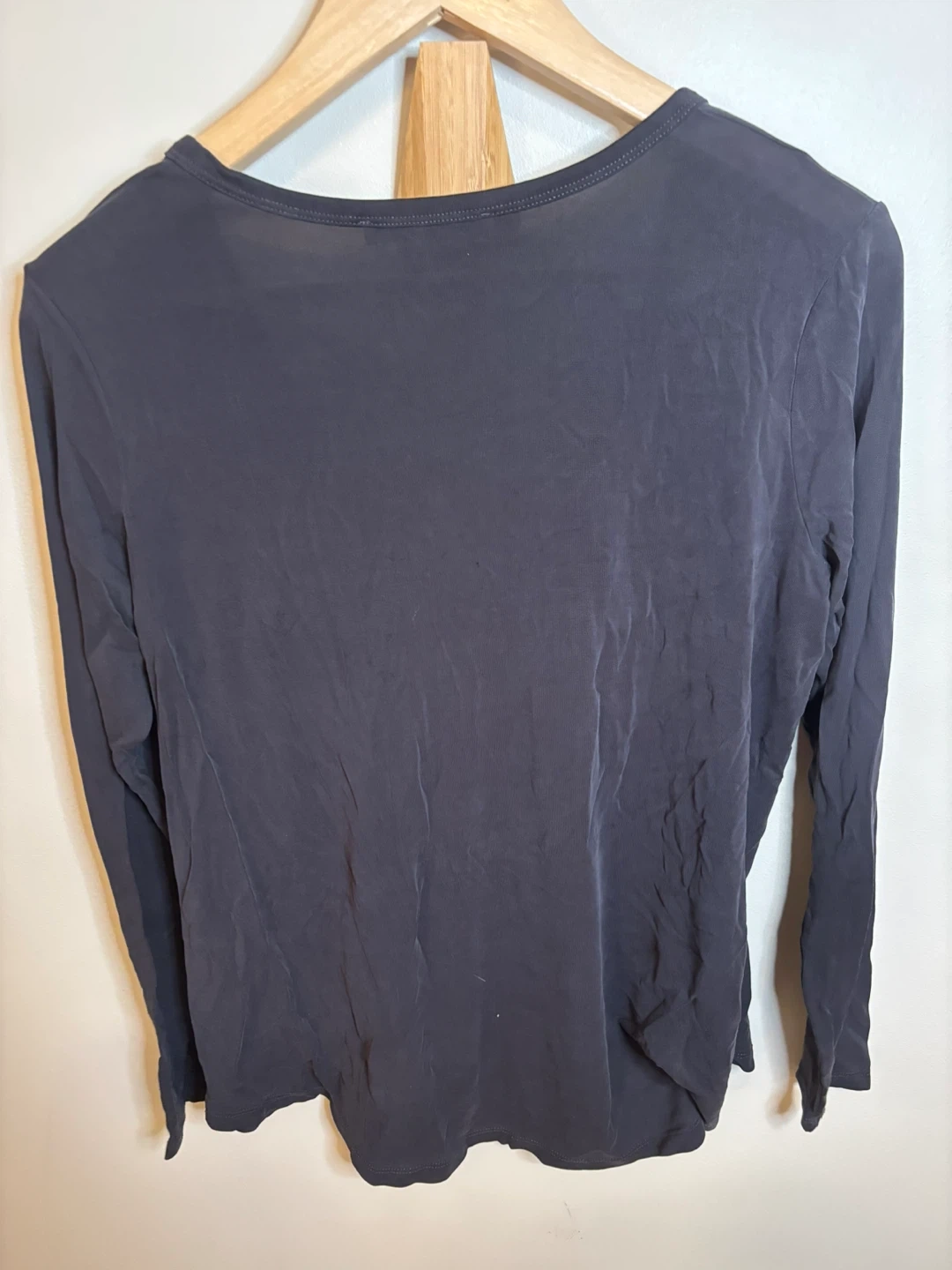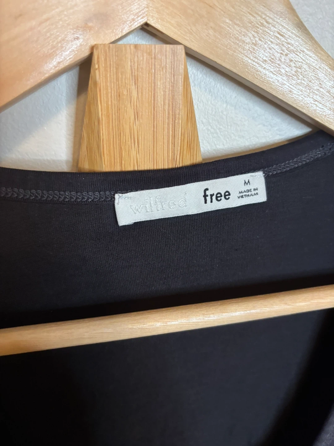 A simple, black long-sleeve top from Wilfred Free! It's a size medium and made in Vietnam. The material is 64% modal and 36% polyester.