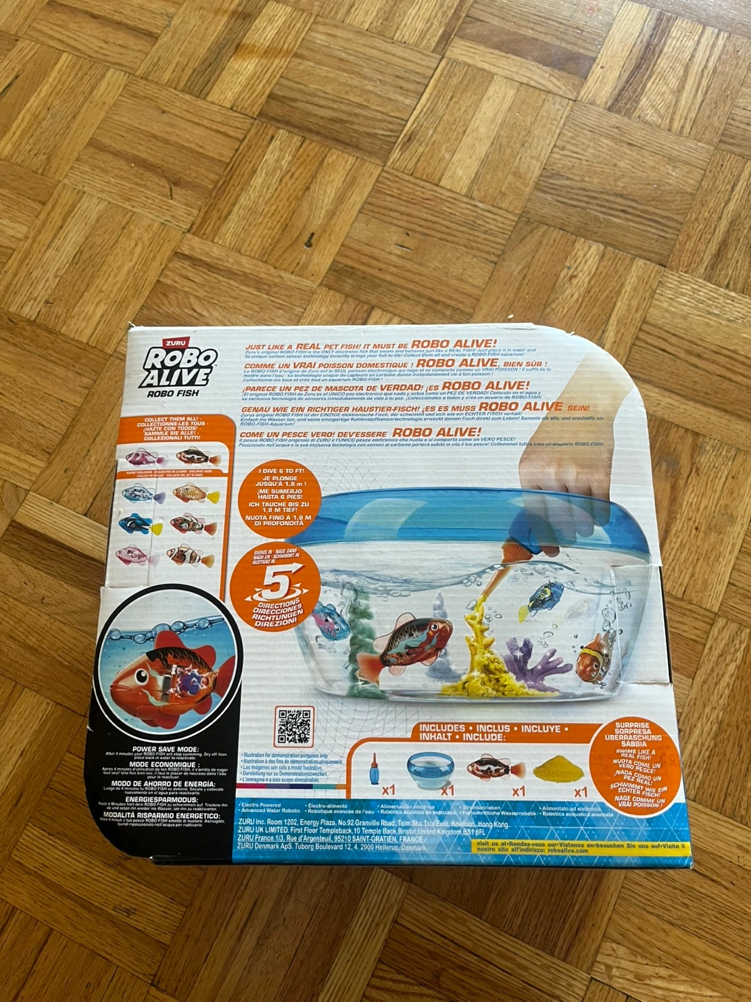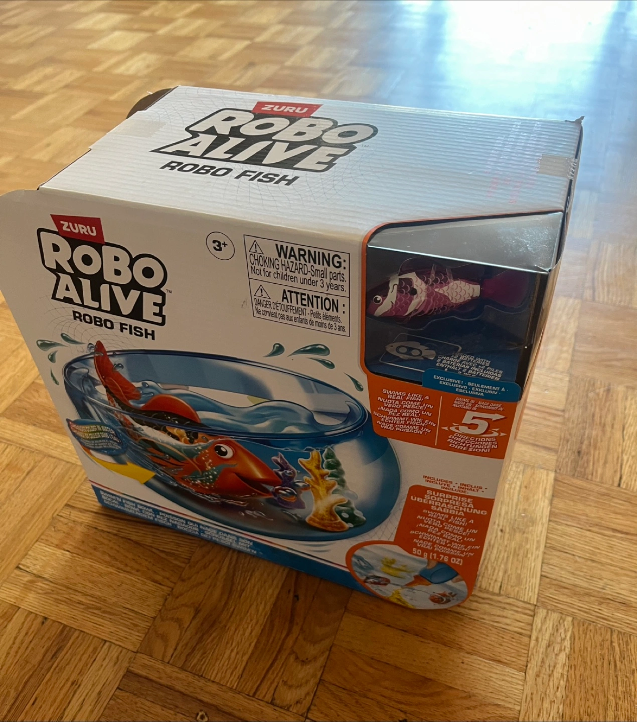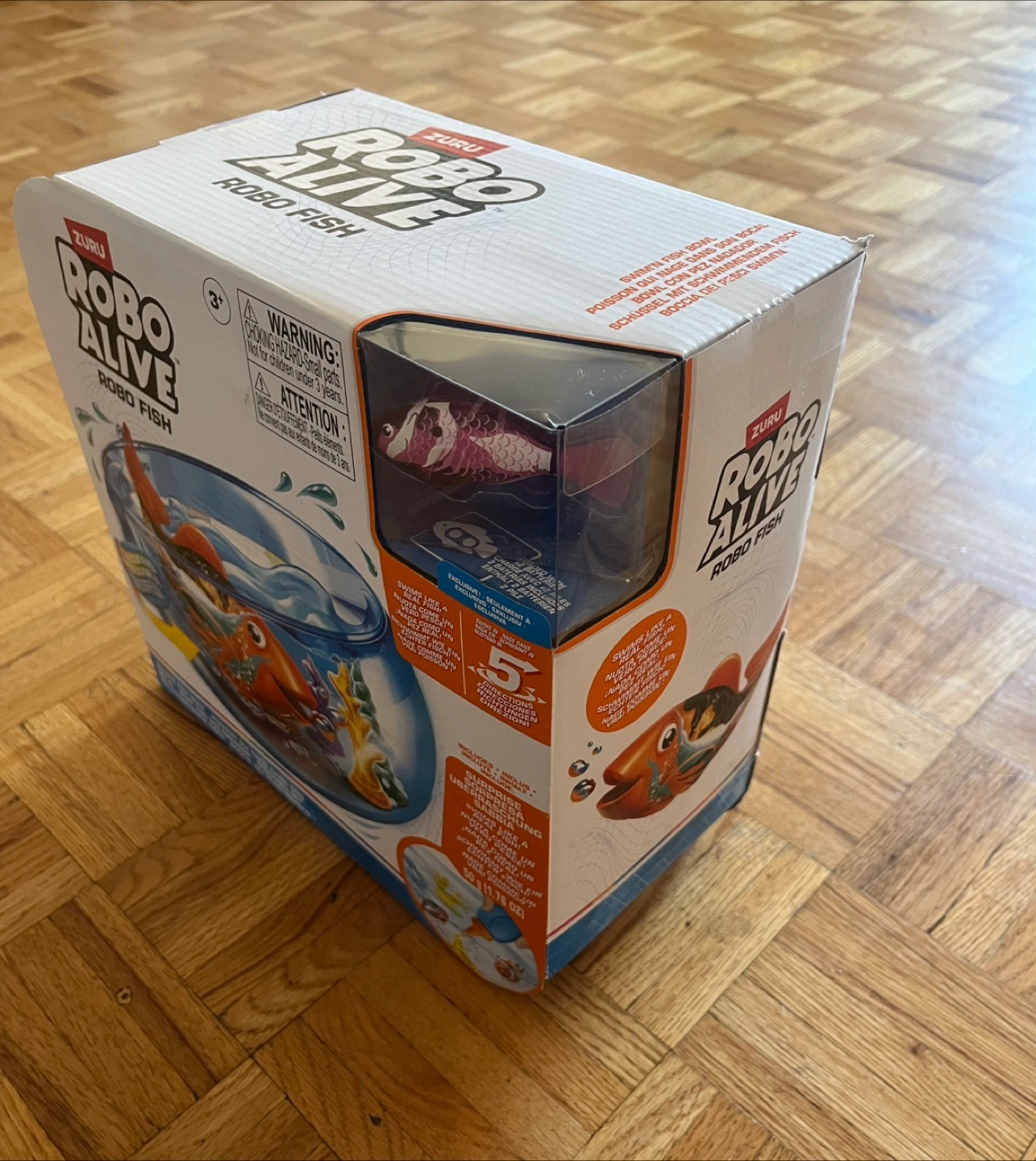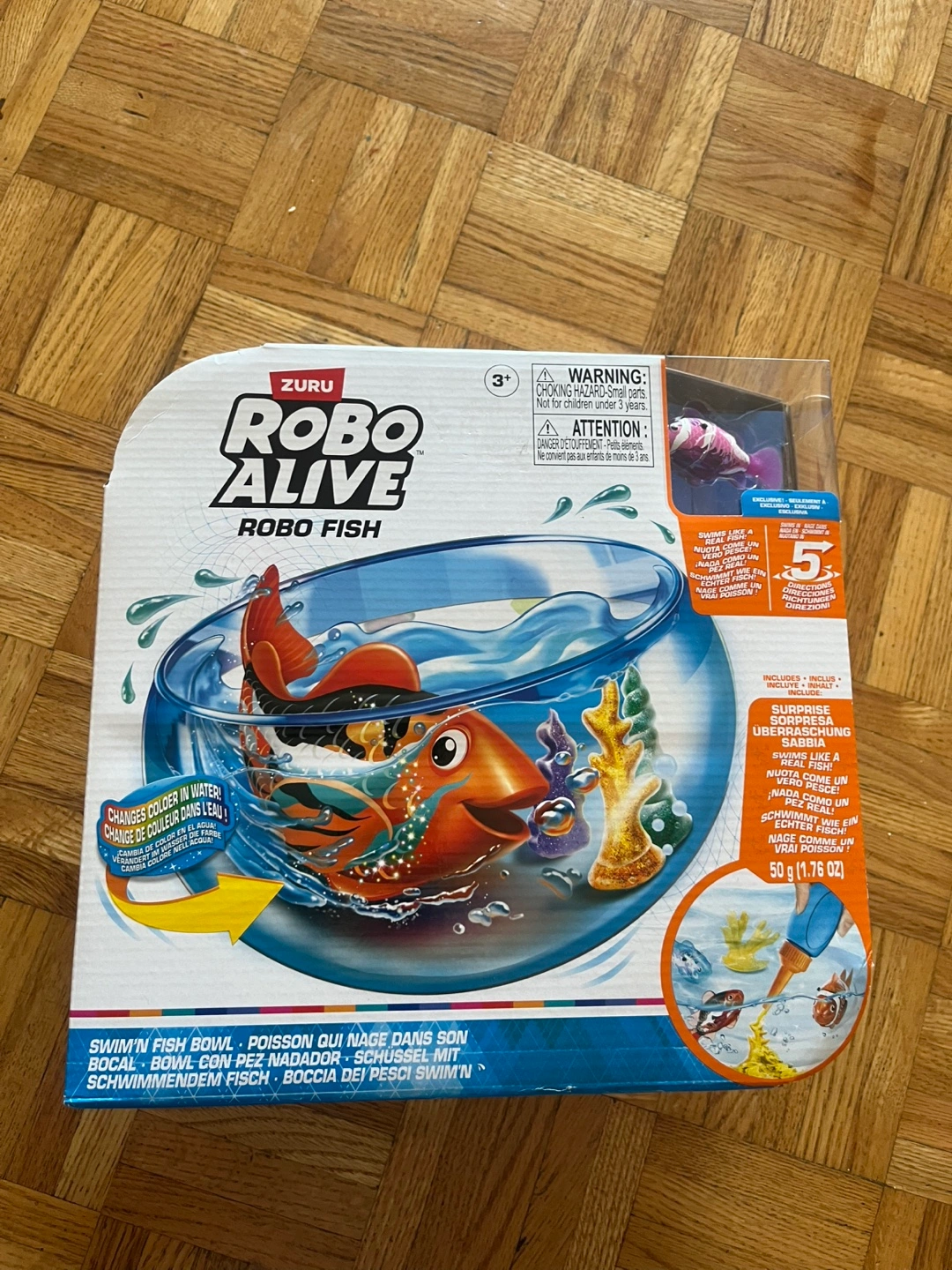Selling a brand new Zuru Robo Alive Robo Fish, still in its original packaging! It's a fun little robotic fish that swims in water. Includes the fish, batteries, and instructions. Cash only