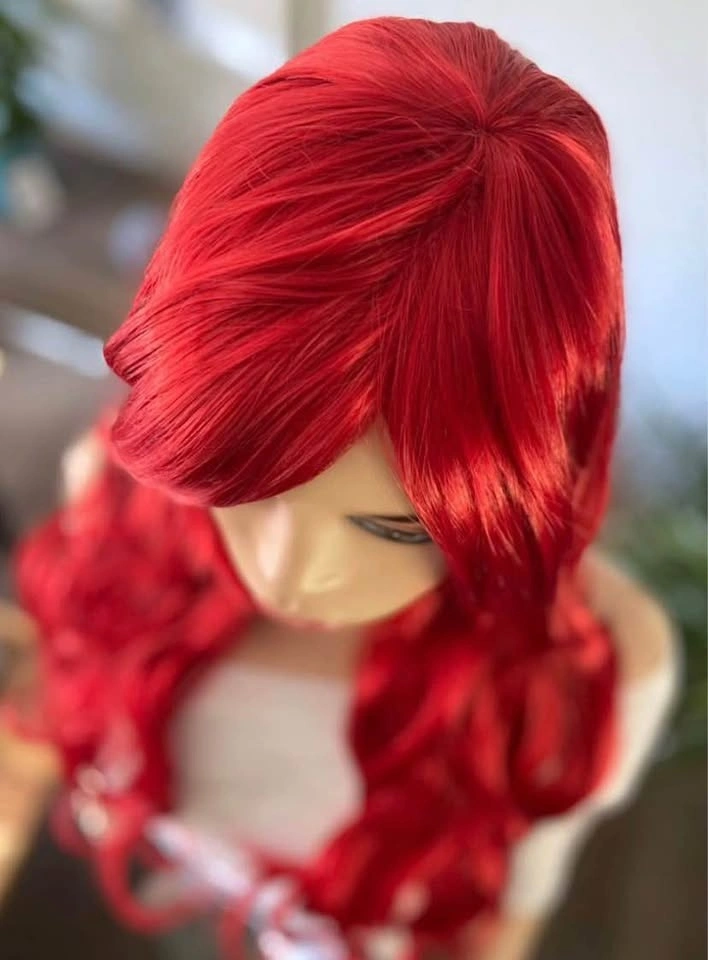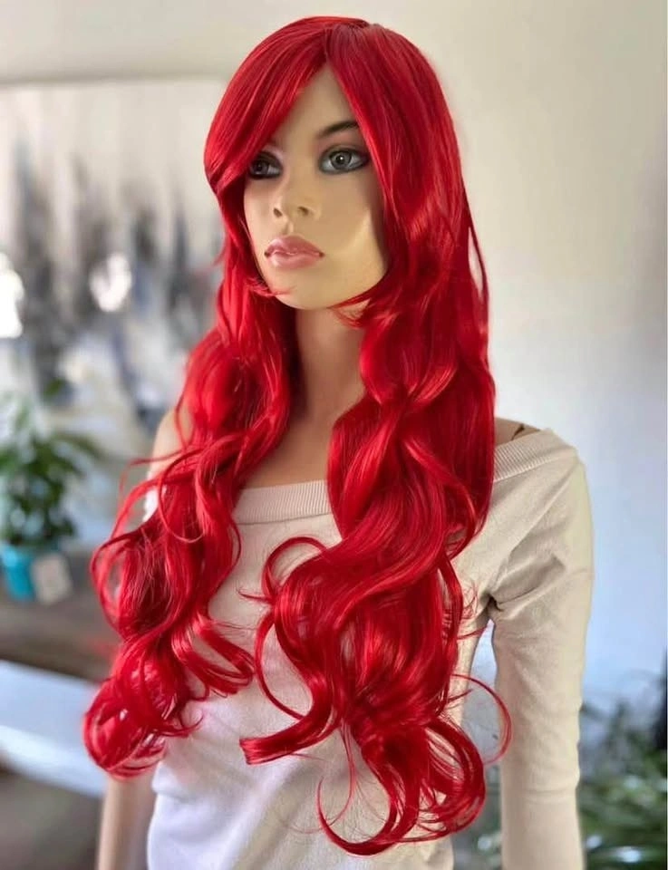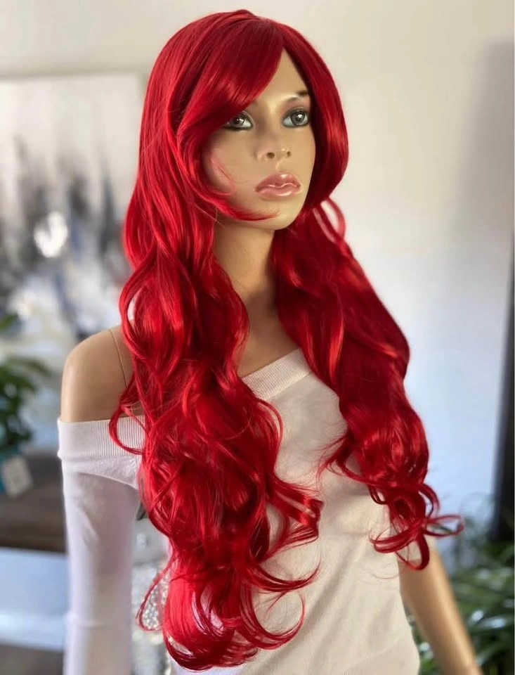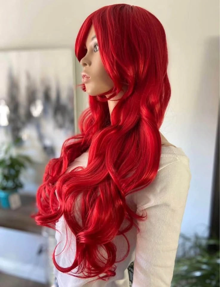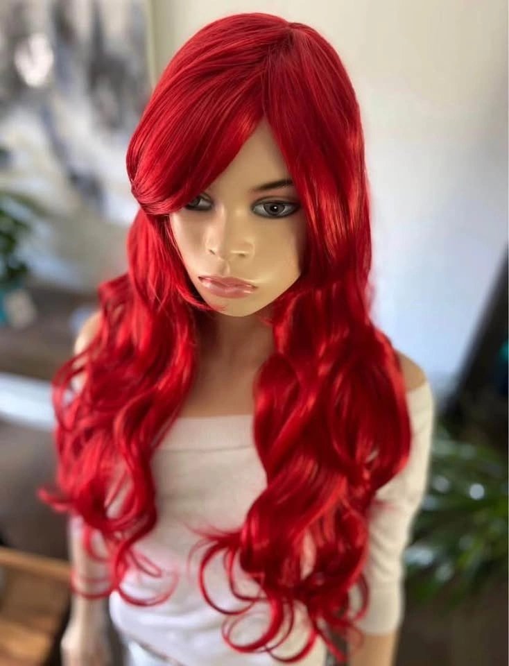 NWT: 28” Long Wavy Layered Bright Red Little Mermaid Ariel Poison Ivy Synthetic Wig w/ Bangs 2328