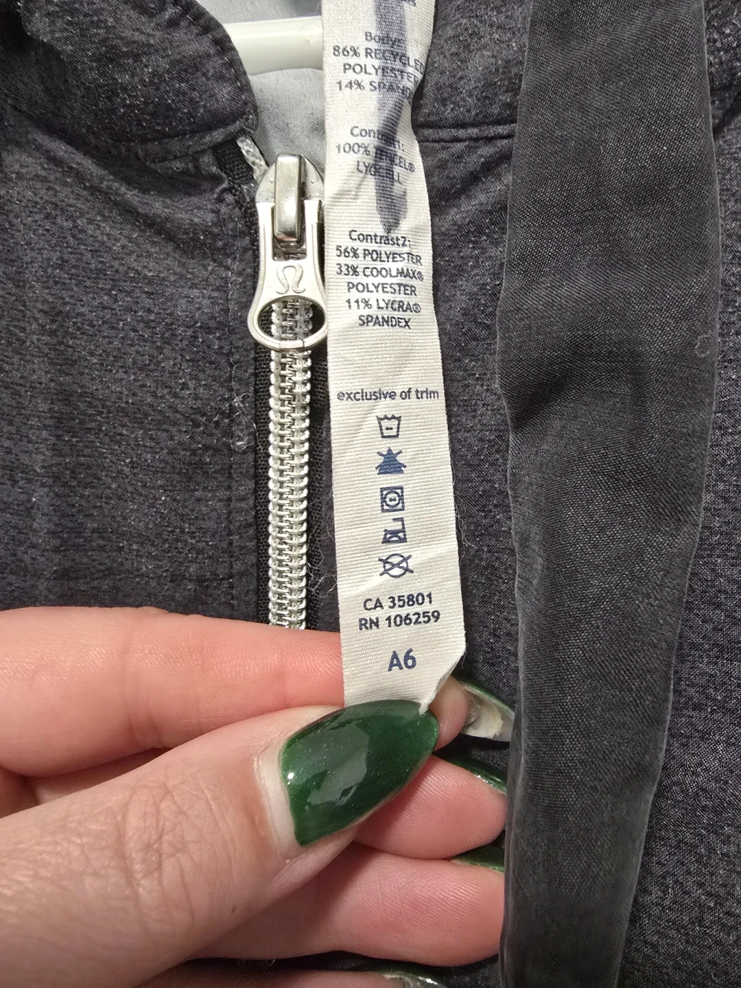 Women's size 6 lululemon light jacket with waist tie and adjustable sleeve length. No rips or stains color is a big faded.