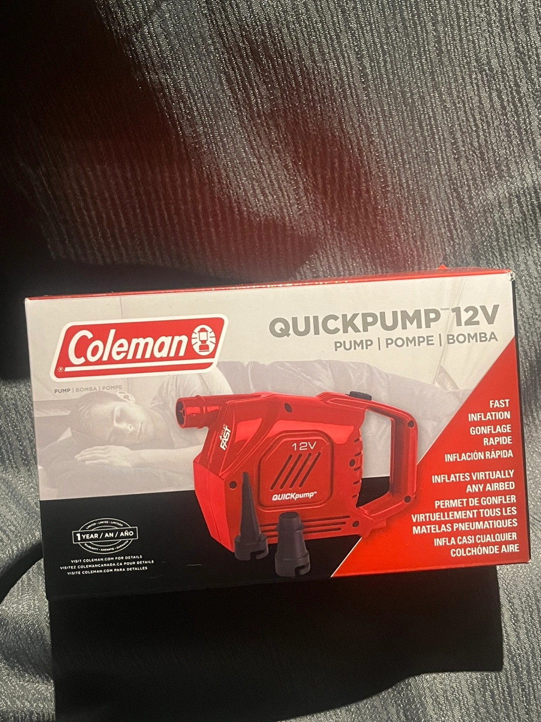 Selling a brand new Coleman QuickPump 12V, still in its original packaging! This pump is perfect for quickly inflating airbeds and other inflatables. It features fast inflation and deflation, making it super convenient for camping or home use. Get ready for your next adventure!
