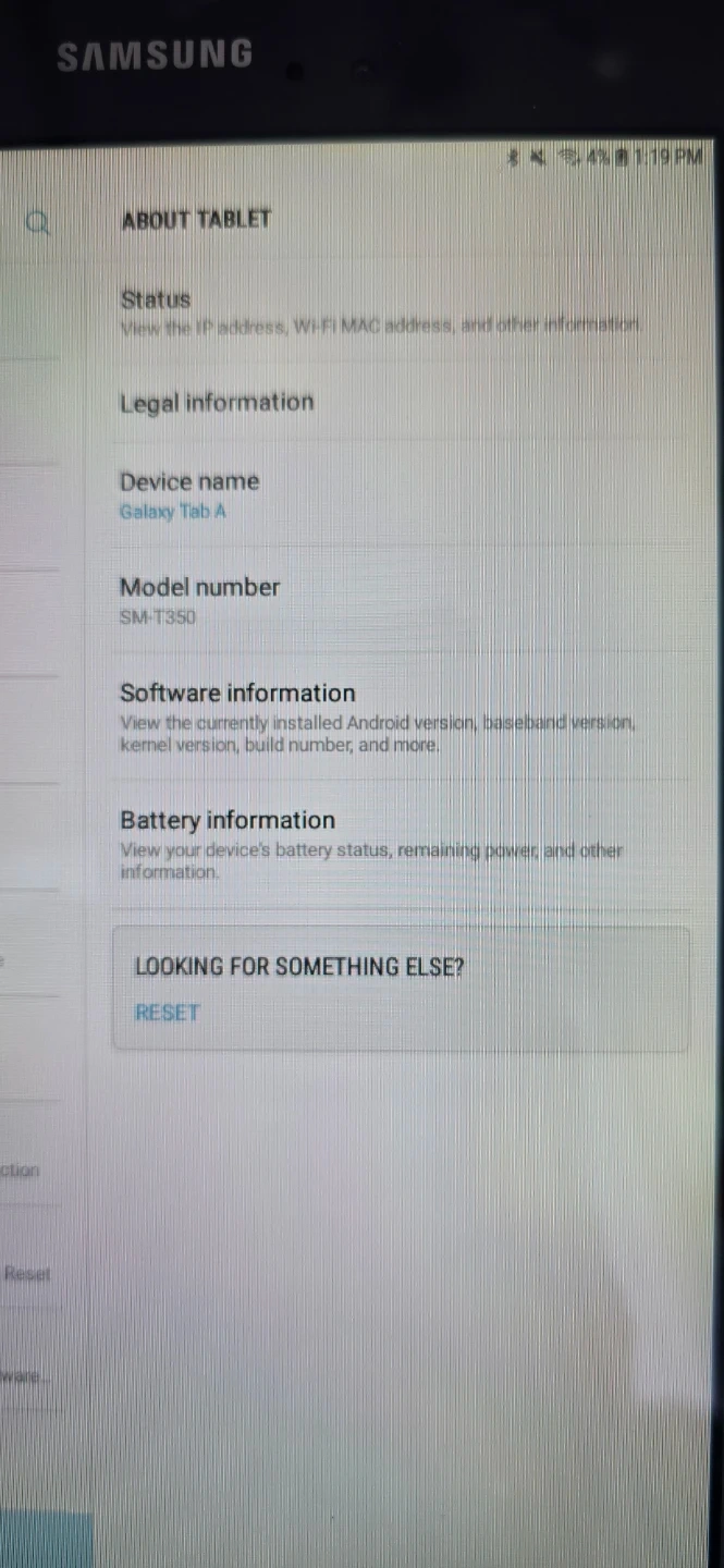 This is a Samsung Galaxy Tab A tablet. It's a SM-T350 model. This tablet's device name is Galaxy Tab A. It's perfect for everyday browsing and light tasks! Comes with Sync Cable and Charger