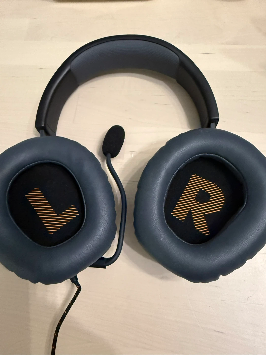 This is a JBL gaming headset. It features a flexible microphone and comfortable earcups with L and R indicators.