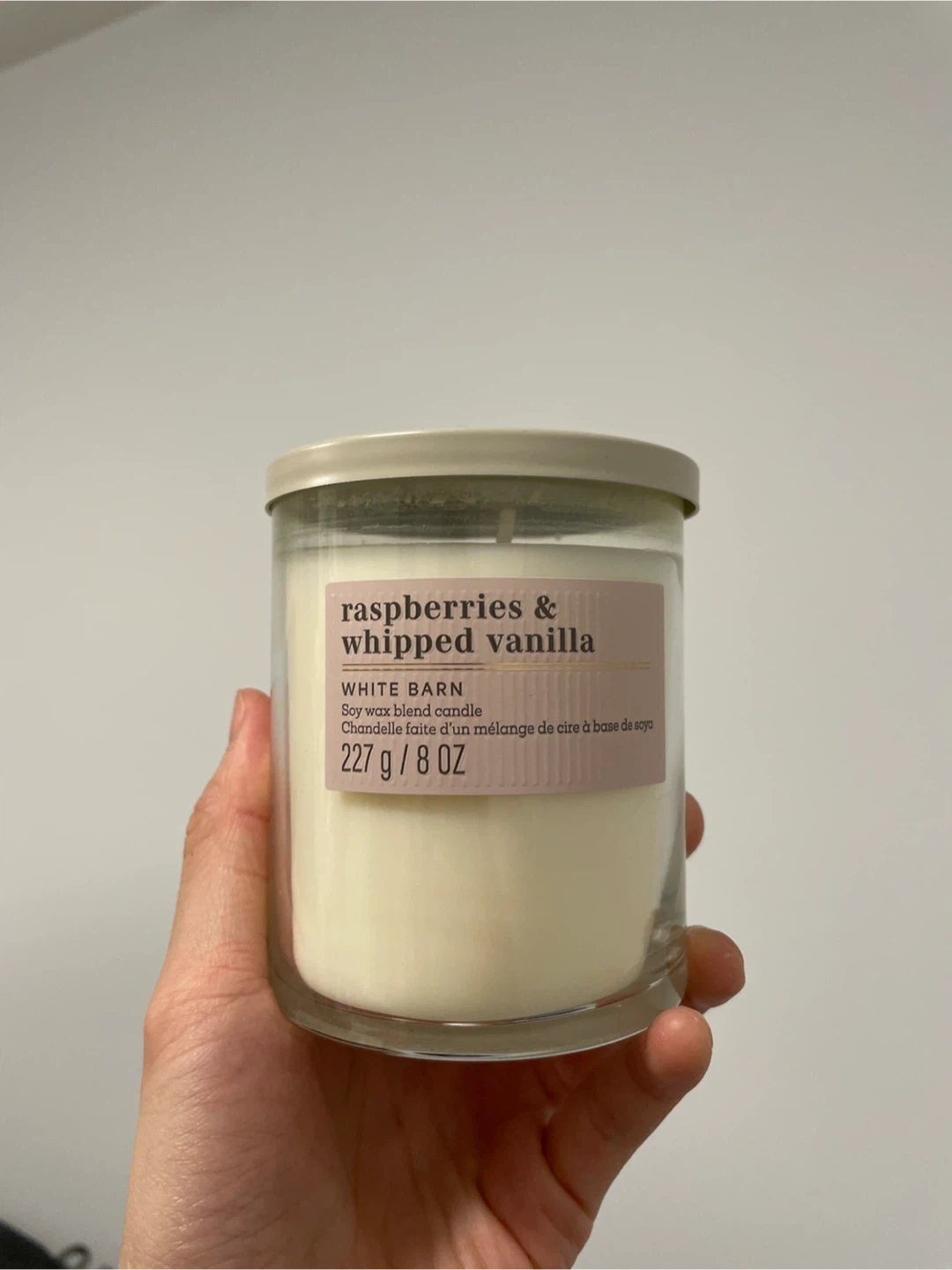 This White Barn candle is made with a soy wax blend. It has a raspberries & whipped vanilla scent and is 227g/8 OZ. It's great for adding a pleasant aroma to any room!