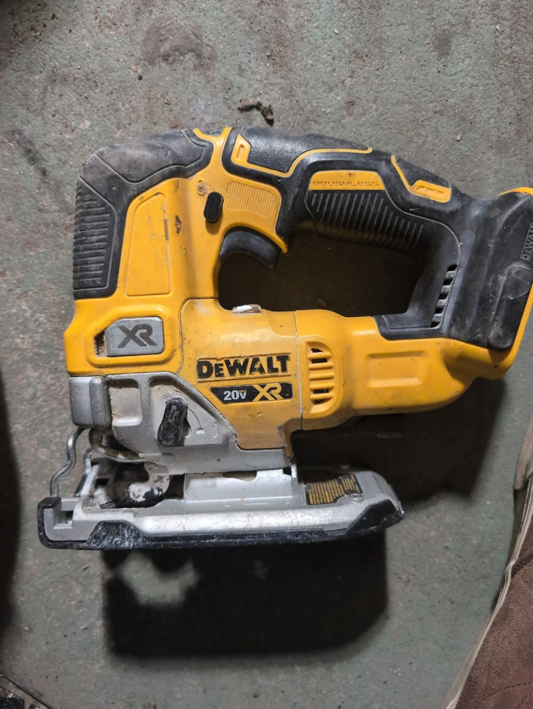 This is a DEWALT 20V XR cordless jigsaw. It features a brushless motor for improved efficiency and performance. Great for various cutting tasks around the house or on the job site!