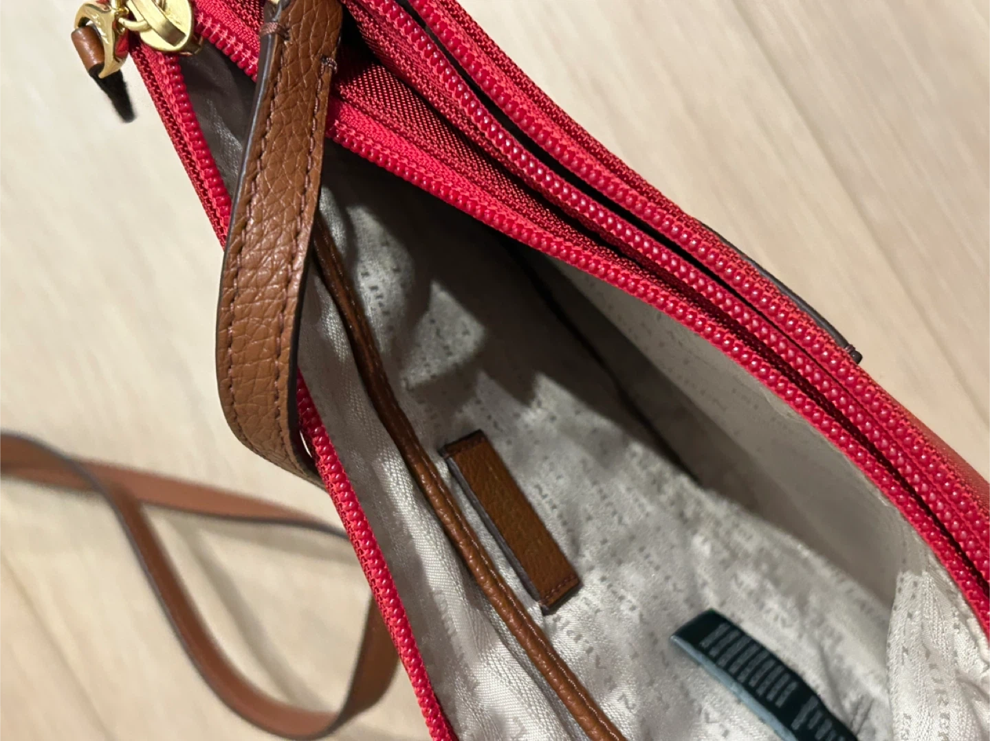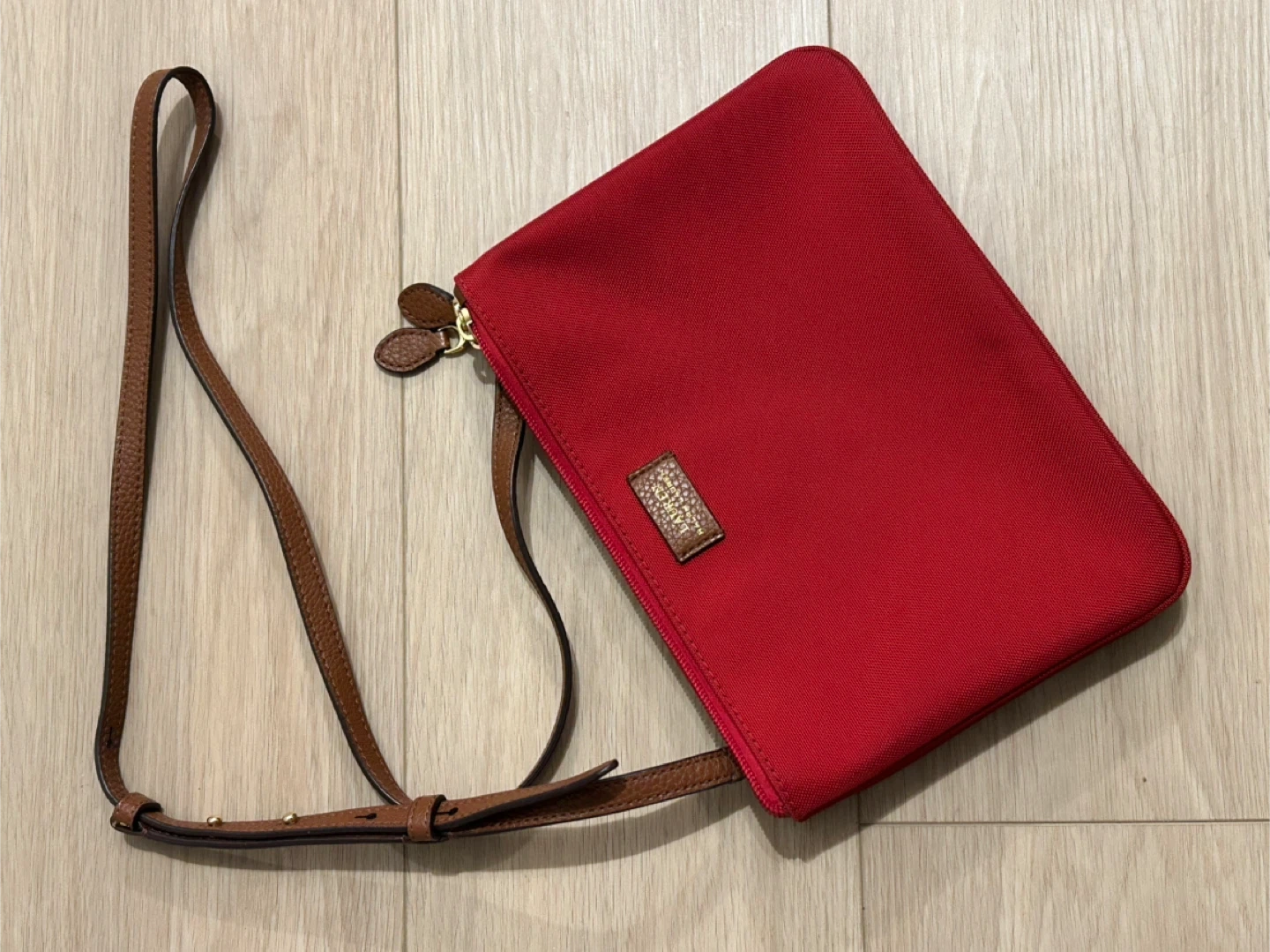 A simple red crossbody bag made of nylon with leather trim - great condition! Rarely used