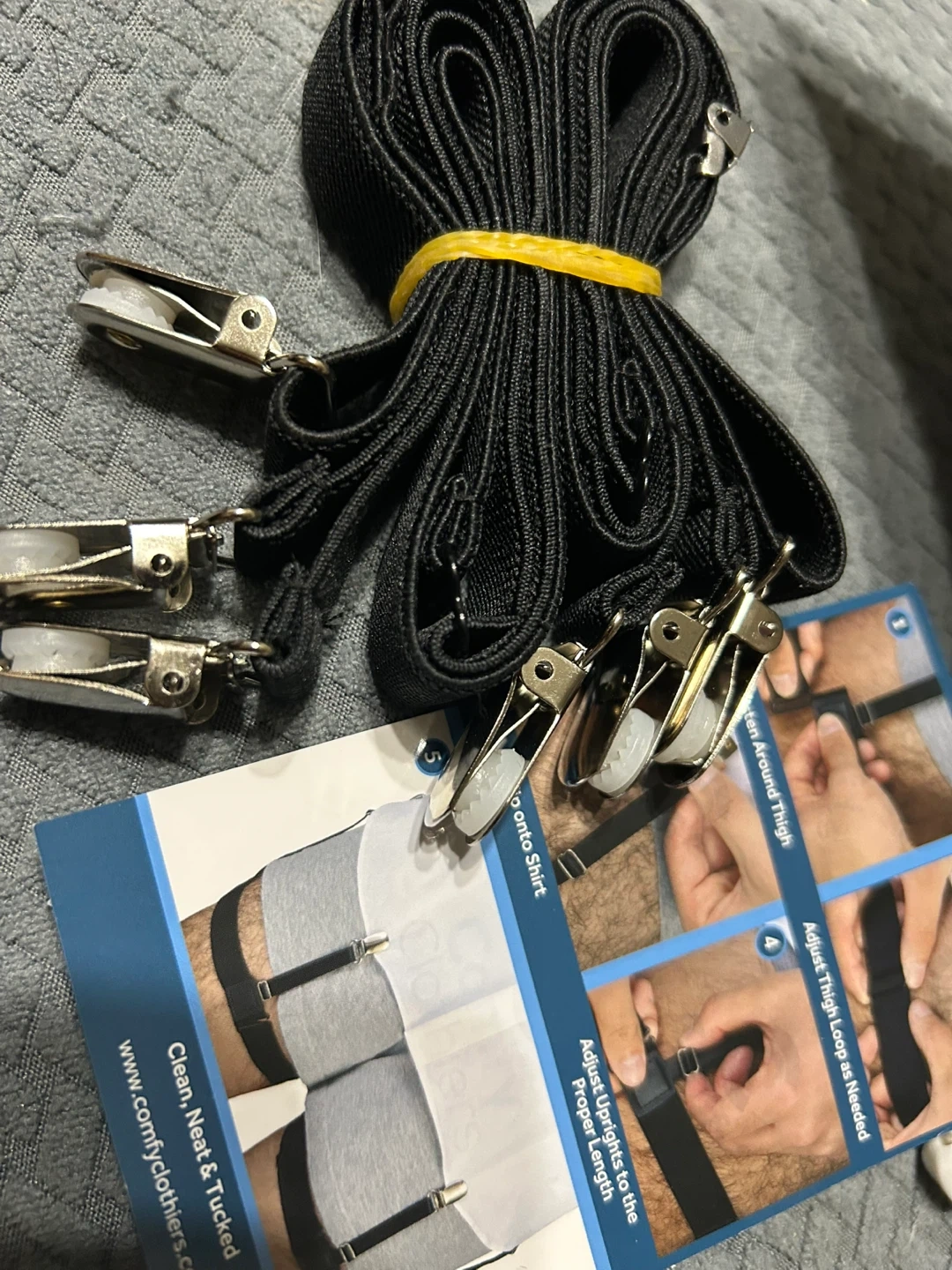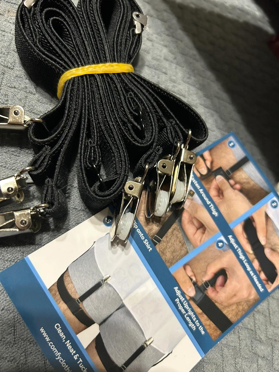 These black shirt stays feature adjustable straps and metal clips to keep your shirt tucked in. They're designed to clip onto your shirt and socks. They're great for maintaining a neat appearance.
