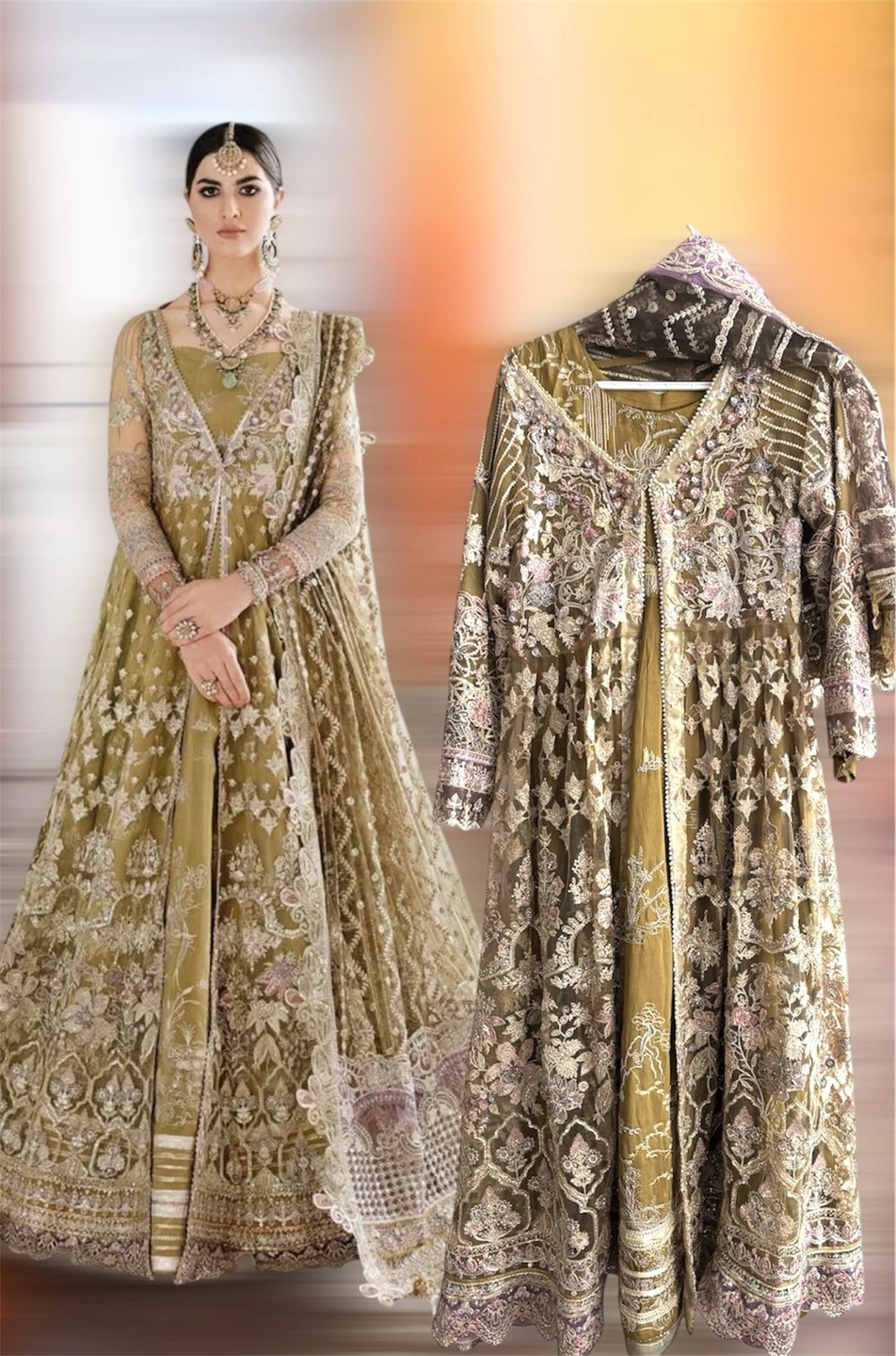Beautiful ladies maxi from Baroque brand, size small, in an elegant olive green color with stunning embroidery. It comes with a gorgeous, heavy dupatta. Chest size is 19 inches. Available for pickup at