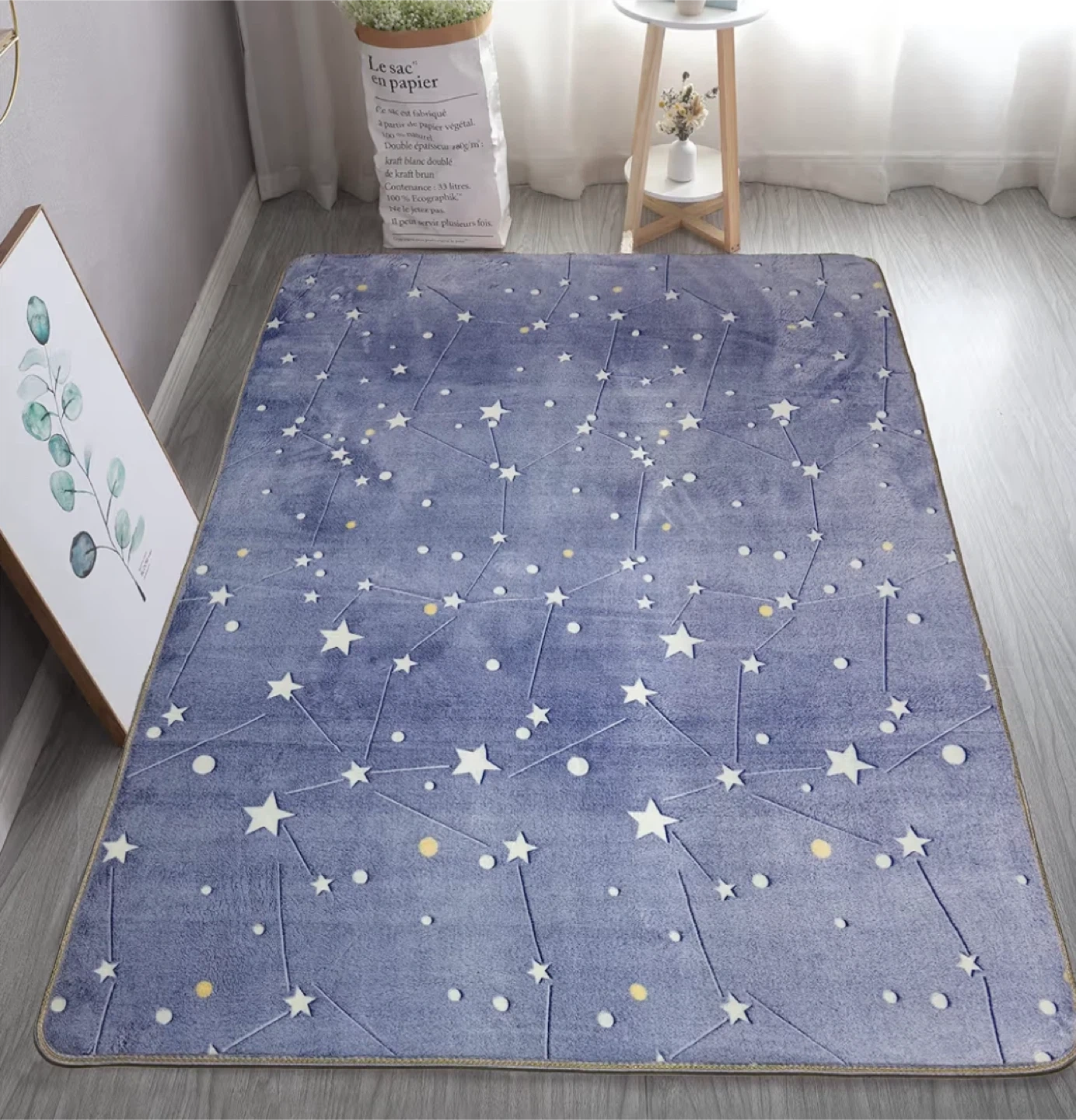 Luminous Area Rug Glow in The Dark for Bedroom Living Room, Unique Soft Washable Modern Indoor Rugs for Children Dorm Home Decor, Blue Galaxy.
