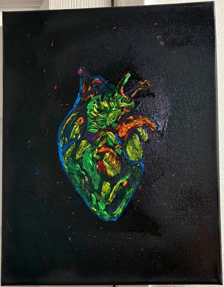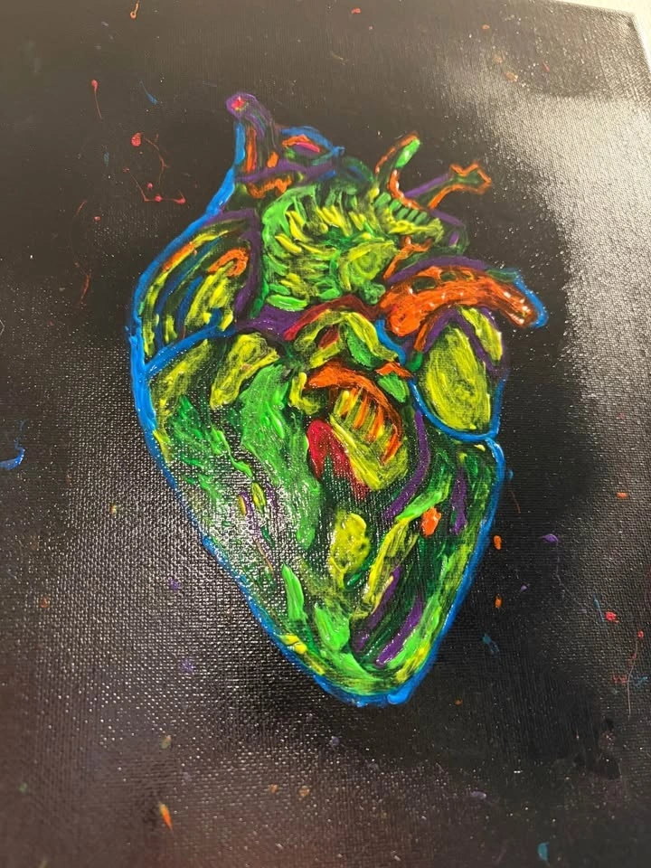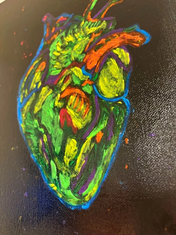 Hand-painted heart with neon acrylic paint. Great for Valentine’s Day!