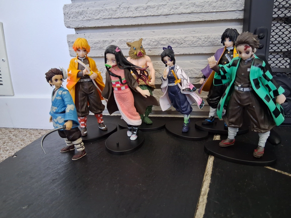 Selling a set of Demon Slayer anime figures! Includes Tanjiro, Nezuko, Zenitsu, Inosuke, Giyu, and Shinobu. Great for any fan of the series!