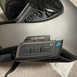 Shoei moto cycle helmet XL. c/w clear fog free visor and dark tint visor. gasket lube, owners manual and Scala Rider G9 communicator. If you are not interested in the communicator, this can be removed and the helmet can sell for $500. Price is firm