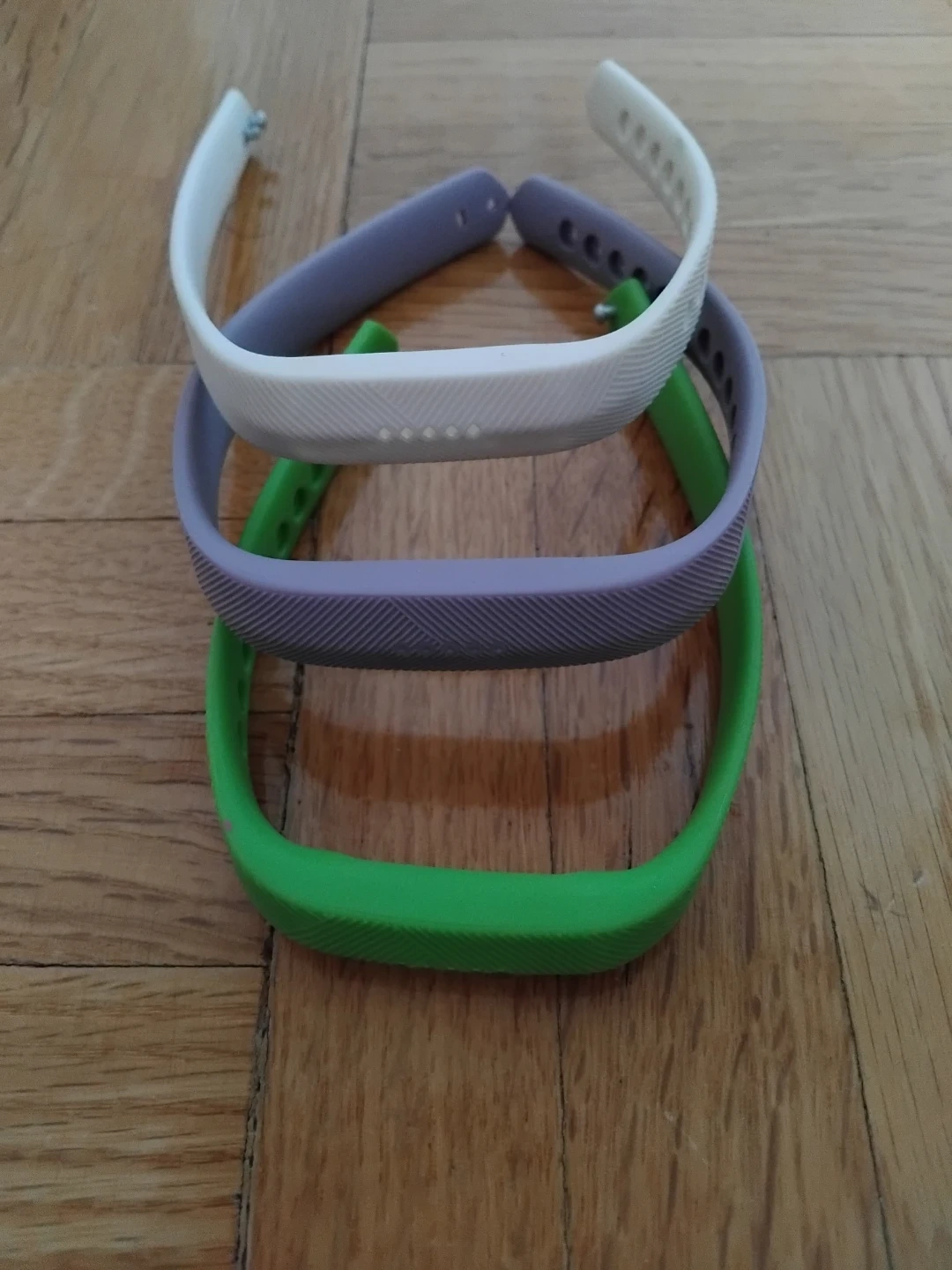 Comes with three replacement bands for the Fitbit Flex. Includes white, mauve, and green colours. Made of durable silicone.