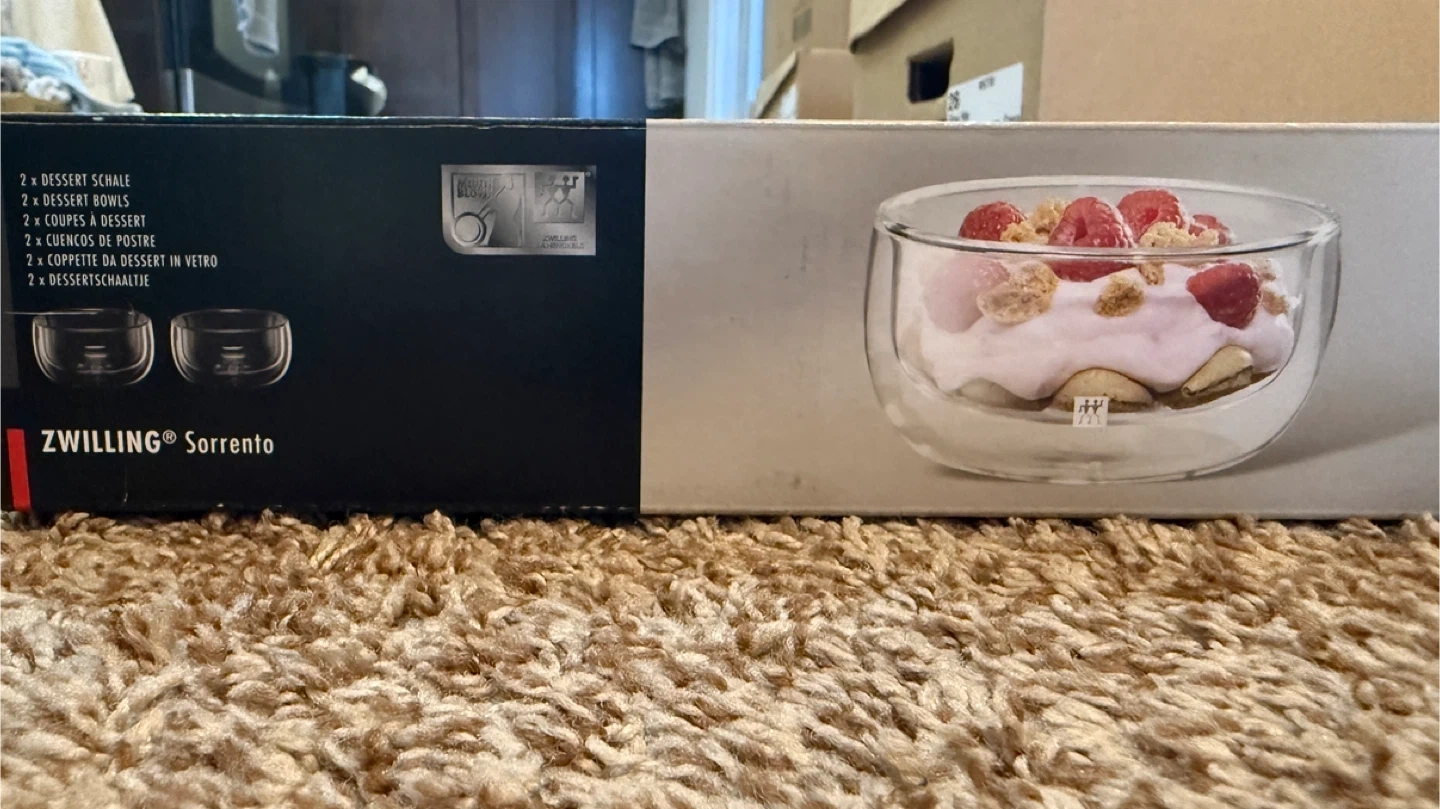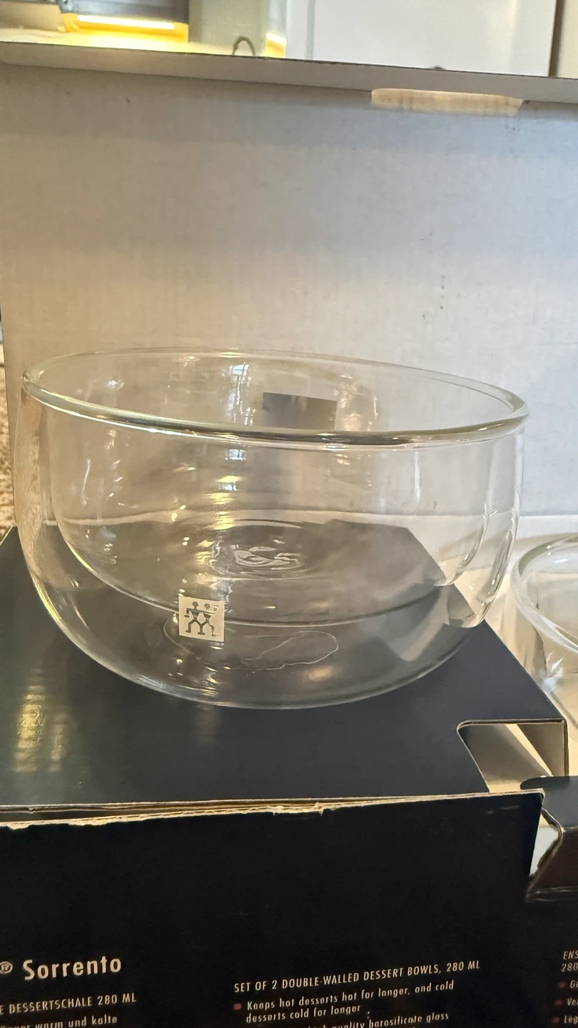 Selling a set of two Zwilling Sorrento double-walled dessert bowls! These bowls are perfect for keeping your hot desserts hot and your cold desserts cold. The set comes in its original box, so it would make a great gift too! PLEASE NOTE: Pickup in Tuscany area. Price is firm. Cash only. Please send me a message with date/time to pickup.