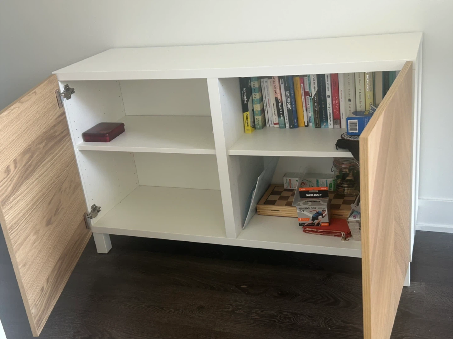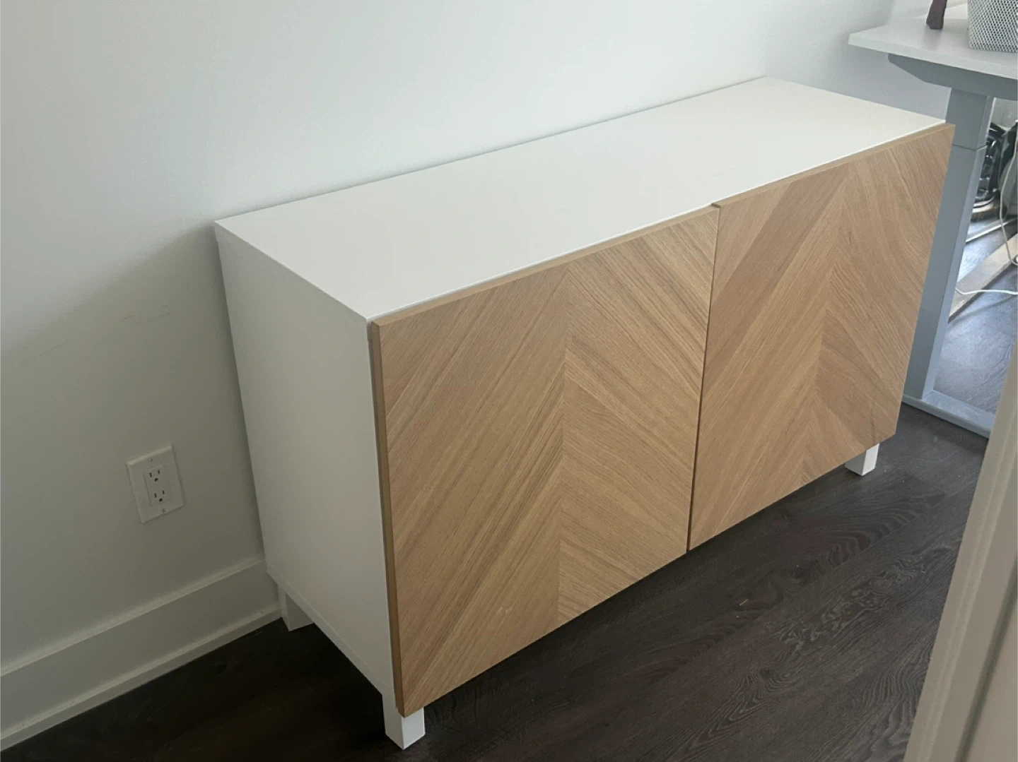 White Cabinet with Wood Front Doors