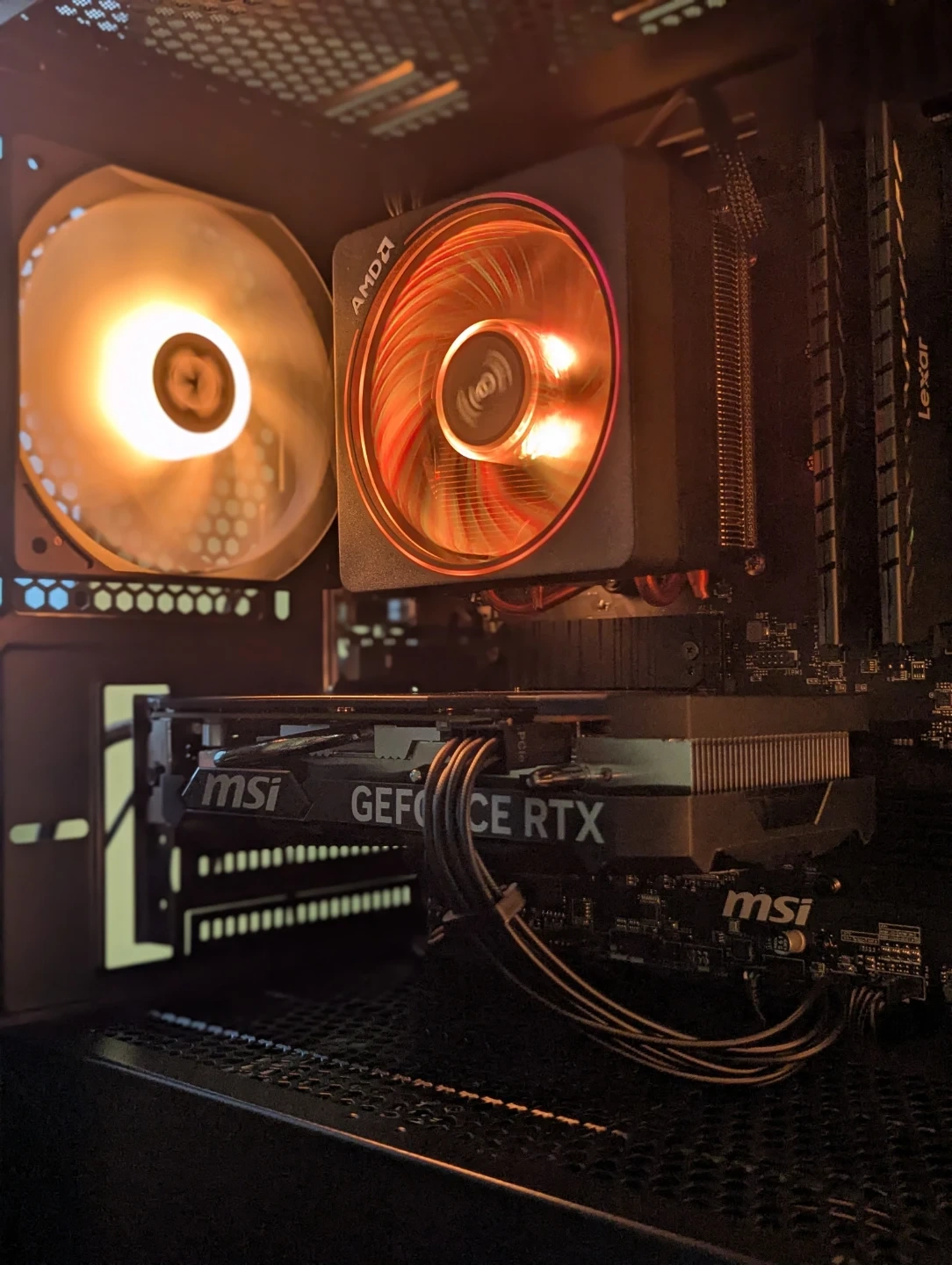 Freshly built custom MSI 1080/1440p gaming PC. Compact and in a beautiful black and wood front panel matx case. Perfect for work and gaming. Handles multiple applications smoothly and quickly with its Ryzen 7 processor and ample 16 GB of RAM, allowing you to effortlessly multitask between applications, spreadsheets, and more. The SSD NVMe ensures fast boot times and quick access to your files. Can easily play AAA games at high settings at 1080p. Delivers stunning visuals and lag-free performance for the ultimate gaming and productivity!