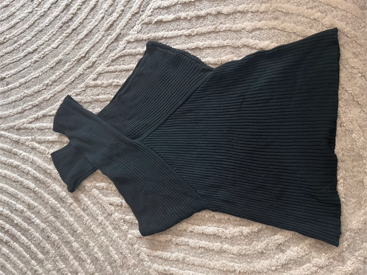 Selling a black ribbed knit top. It's in great condition and ready for a new home! The material is soft and comfortable, perfect for layering or wearing on its own