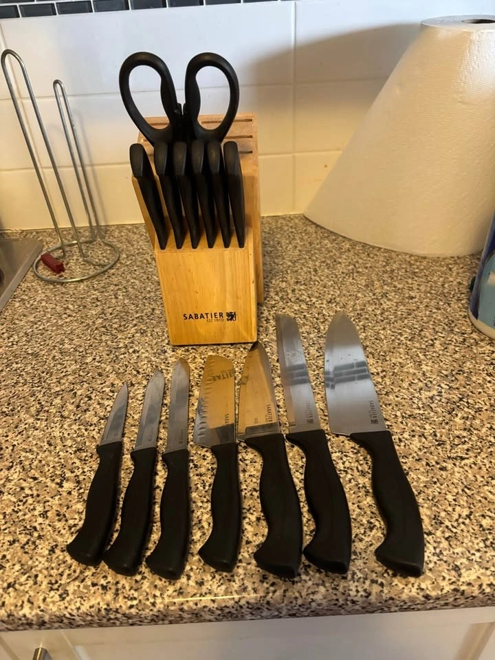 Buy & SellKnife Block with Scissors and Steak KnivesKnife Block with Scissors and Steak Knives$20Includes scissors and steak knives, plus the other knives shown in the picture. Pick up 2300 South Millway, Mississauga.WHERE TO MEETCheck LocationView MapSELLERSueErin Mills573 reviews2 chats·2 favorites·5 viewsSEND CHAT TO SELLERHi Sue! I’m interested in your listing.Hi Sue! I’m interested in your listing.Get the Karrot app to chatSign In to chat