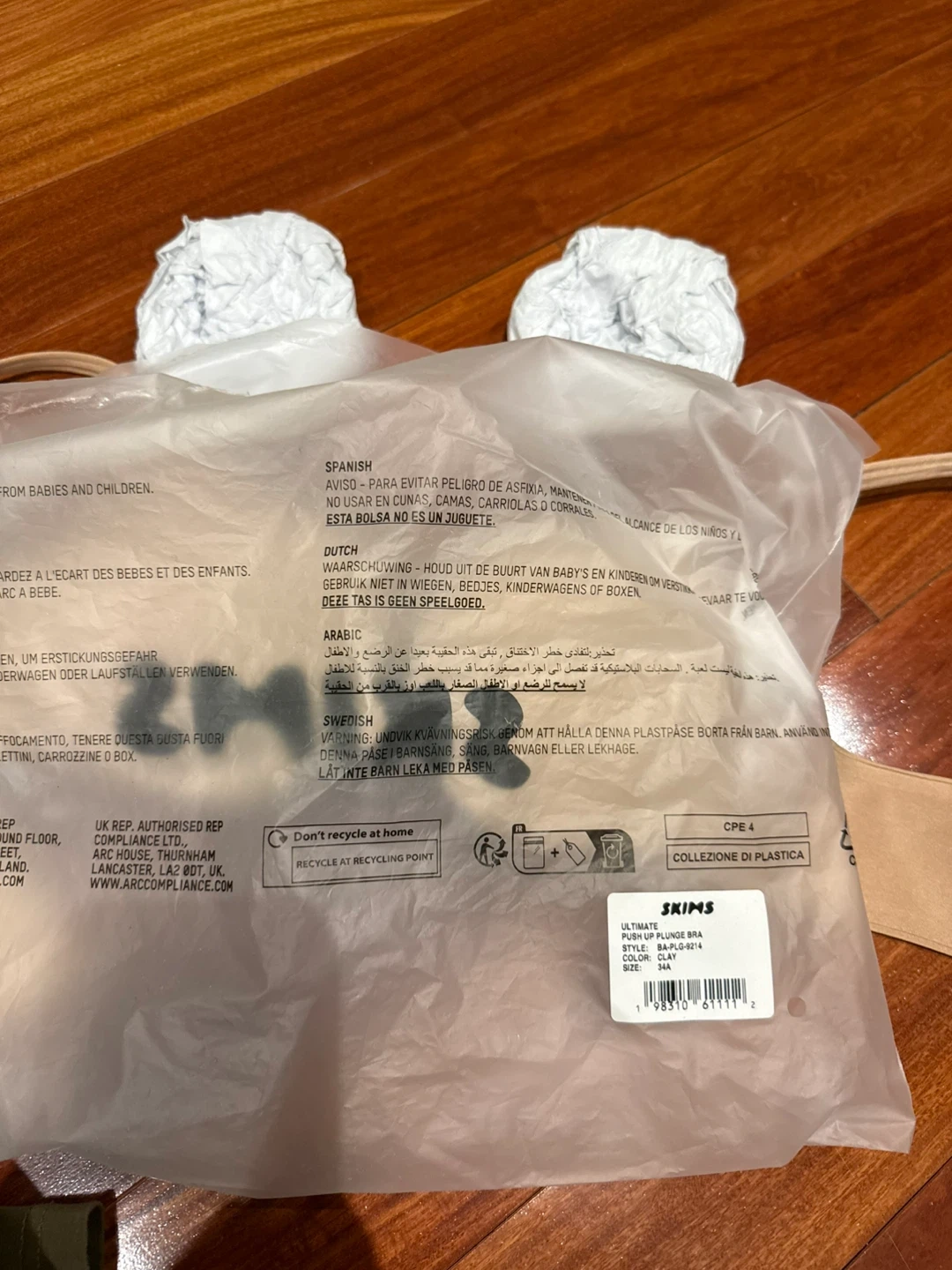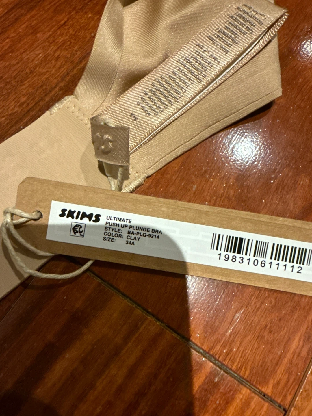 SKIMS Ultimate Push Up Plunge Bra in Clay. This bra is a size 34A.
