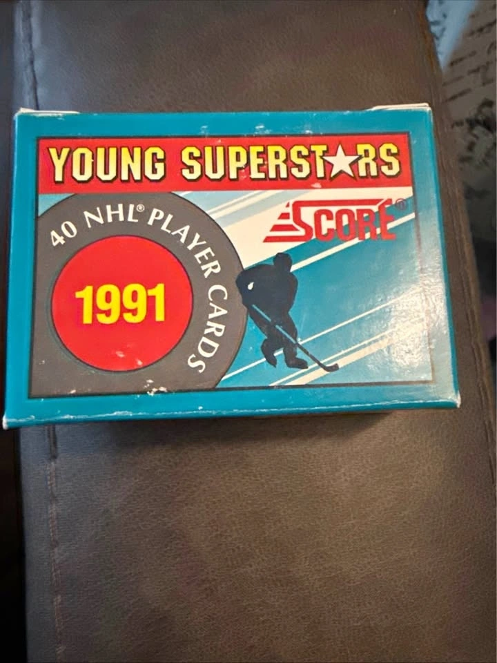 Selling a 1991 Score Young Superstars factory sealed box of hockey cards. This box contains 40 NHL player cards featuring young superstars of the era. The box is factory sealed, adding to its value and collectibility. Condition is good considering its age, with some wear on the box. Get ready to open a piece of hockey history! Year: 1991, Brand: Score, Set: Young Superstars, Type: Factory Sealed Box, Number of Cards: 40, Sport: Hockey. Based on recent sales data from Kijiji and other online marketplaces, similar boxes typically sell in the range of $30 to $60 CAD. Given the sealed nature and good condition of the box, I am pricing it at the higher end of this range. If the ad's still up, it's still available!