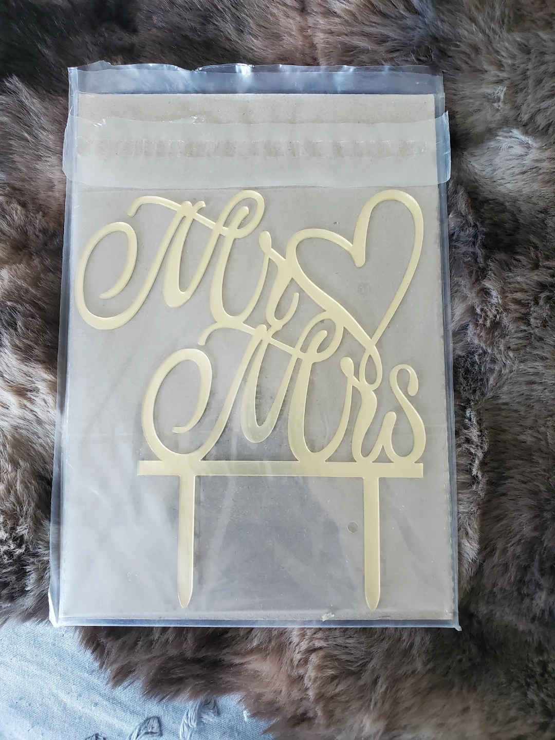 Buy & SellMr & Mrs Gold Cake TopperMr & Mrs Gold Cake Topper$5Gold acrylic cake topper with "Mr & Mrs" design and a heart. Perfect for wedding or anniversary cakes!WHERE TO MEETMailbox @ Seabreeze and McNeillyView MapSELLERSuzyStoney Creek584 reviews0 chats·0 favorites·1 viewsSEND CHAT TO SELLERHi Suzy! I’m interested in your listing.Hi Suzy! I’m interested in your listing.Get the Karrot app to chatSign In to chat