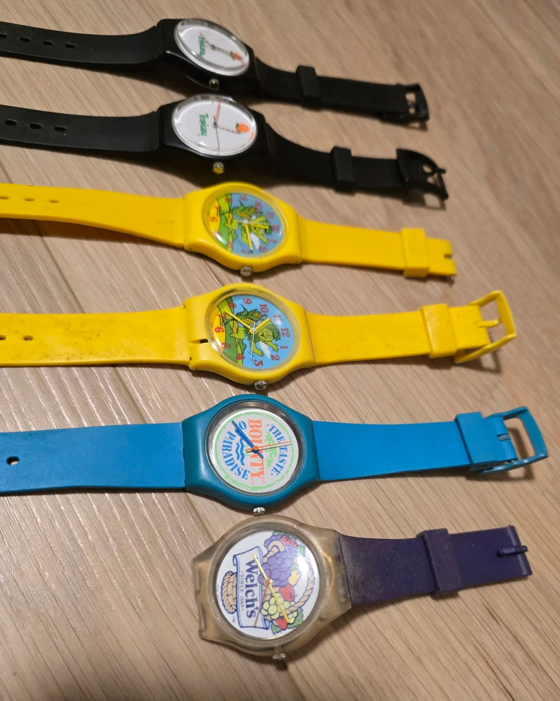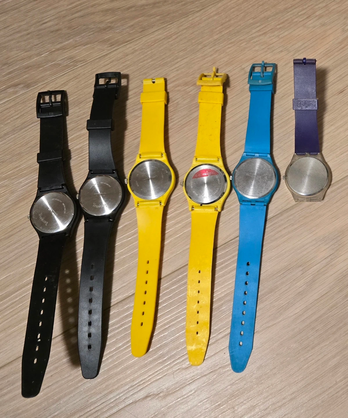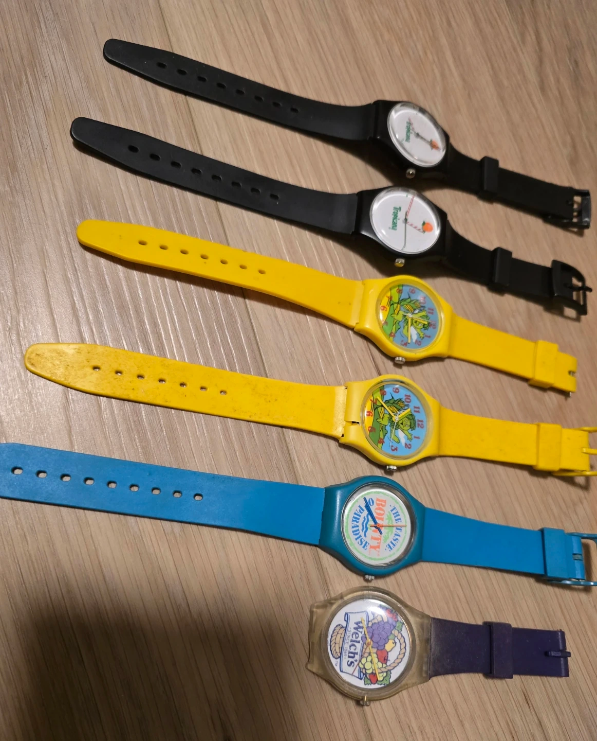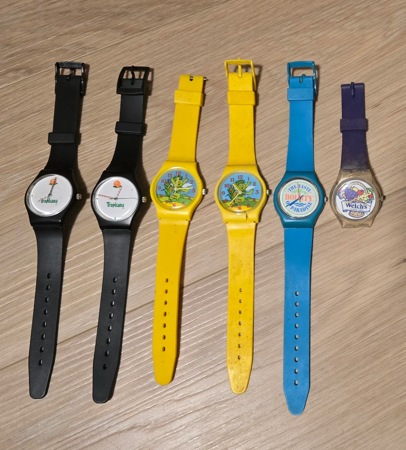 The first 5 have been tested and work. However batteries will not be included. The 6th watch (welches) has not been tested and im just assuming it doesn't work.