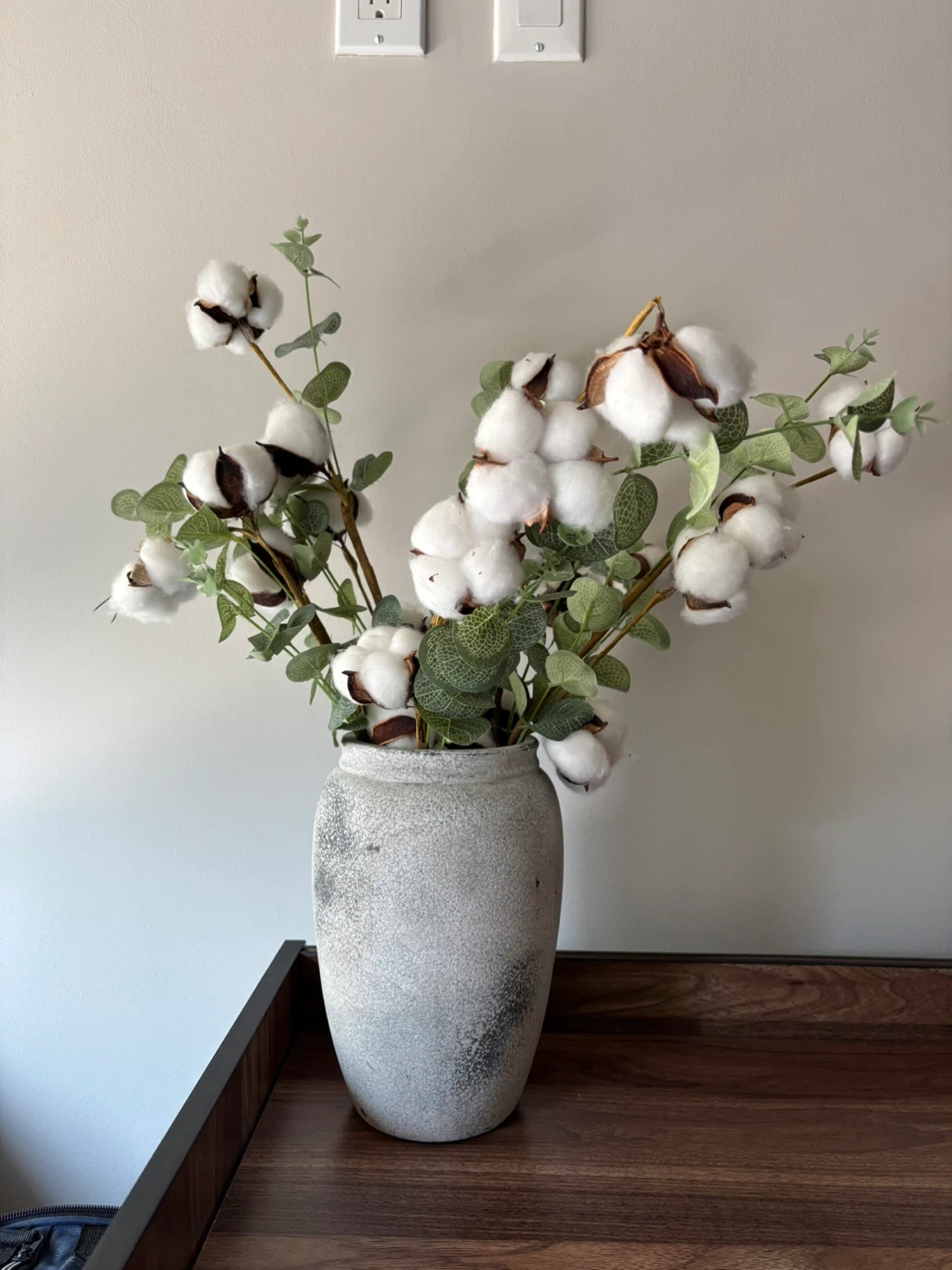Faux Cotton Stems in Textured Vase