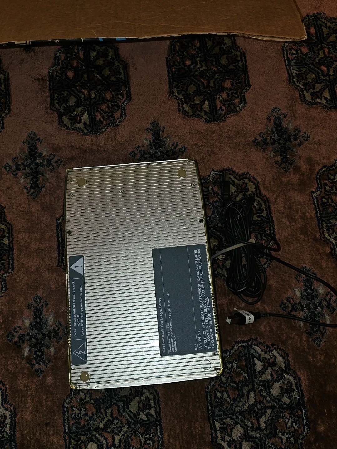 Selling a Mad Dog External DVD Burner. It's an external subsystem with the model number EEC-1225T. It requires an AC input of 100-240VAC, 50/60Hz, 0.6A/0.3A.
