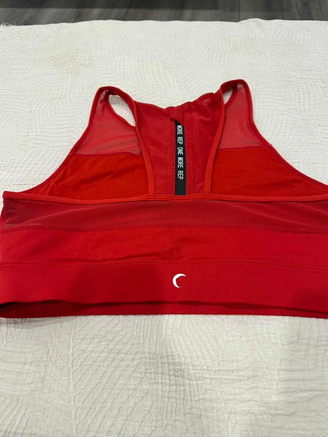26Selling a bundle of Zyia activewear! Included are a long sleeve top with a perforated design, a red sports bra with "MORE REP ONE MORE REP" on the back, and a pair of grey athletic pants with gold zippers. All items are in great condition and ready for your next workout