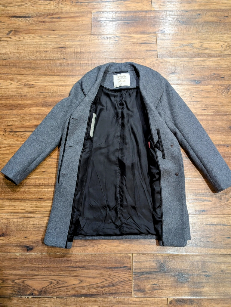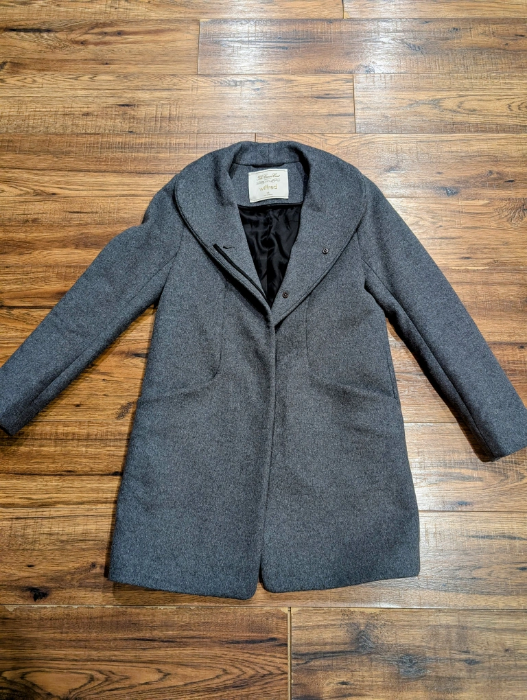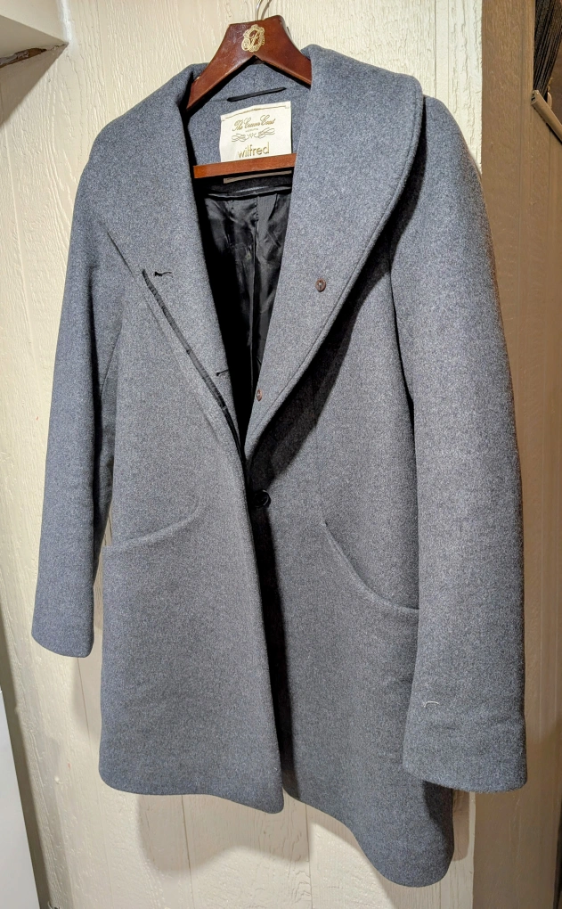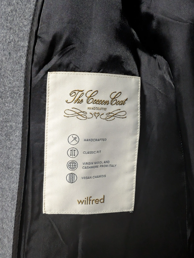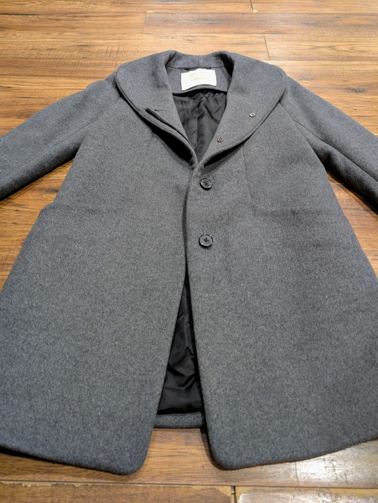 Wilfred Cocoon coat, Grey wool coat with a large collar. Classic fit, handcrafted. Made with virgin wool and cashmere from Italy. Vegan chamois. Size is XS , very soft , warm & beautiful quality!!