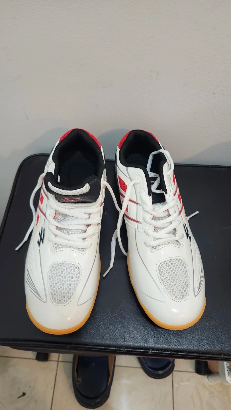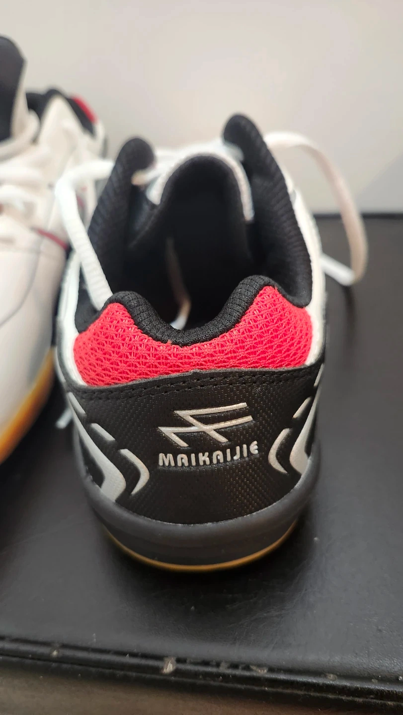They're white with red and black accents and with non-marking sole perfect for indoor sports!