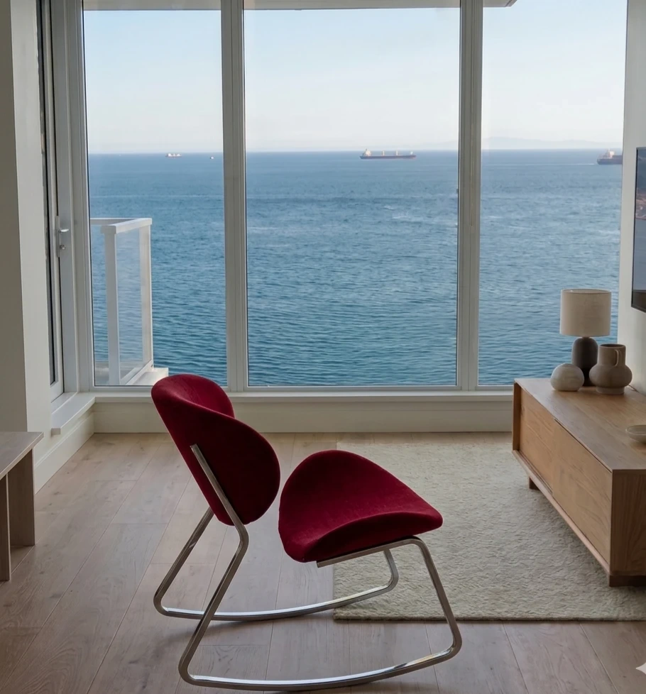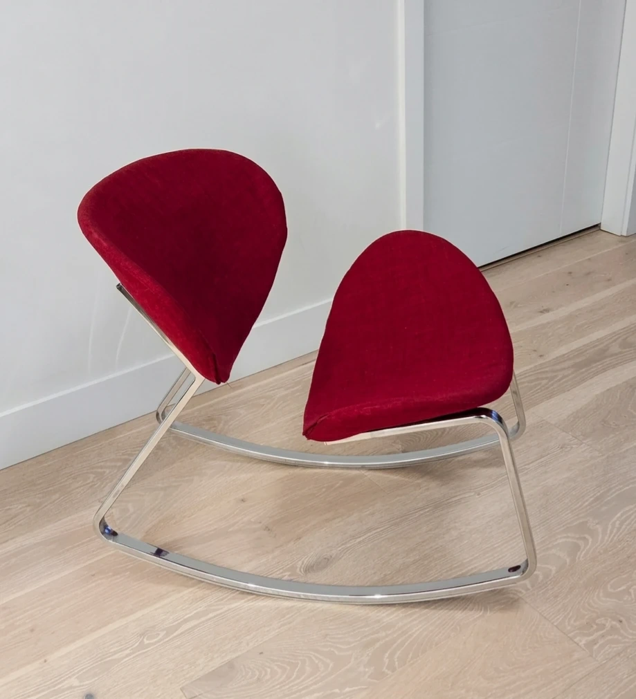 A modern rocking chair that blends geometry, color, and metal into a single fluid gesture. It’s the kind of piece that instantly becomes the focal point of a room.