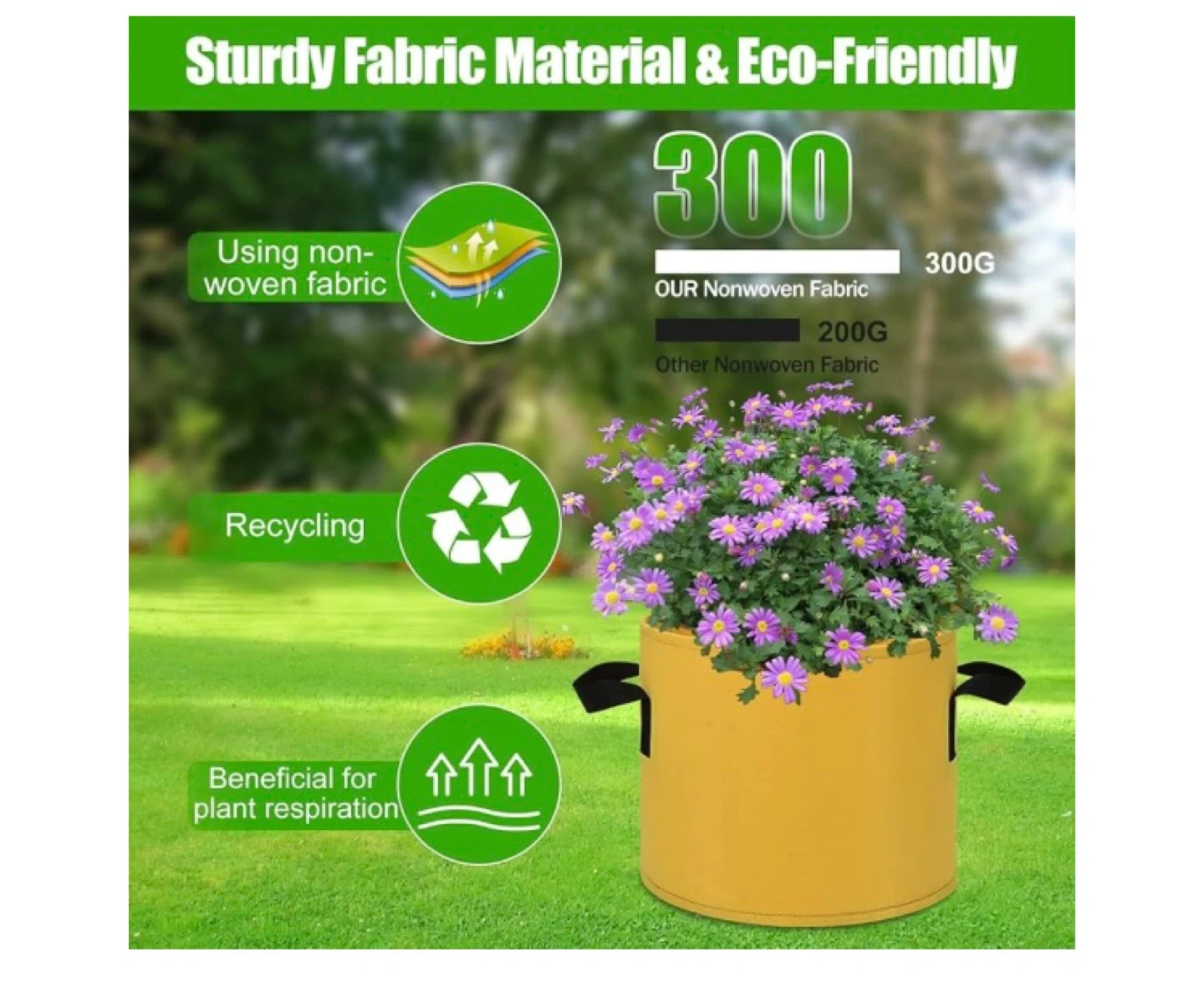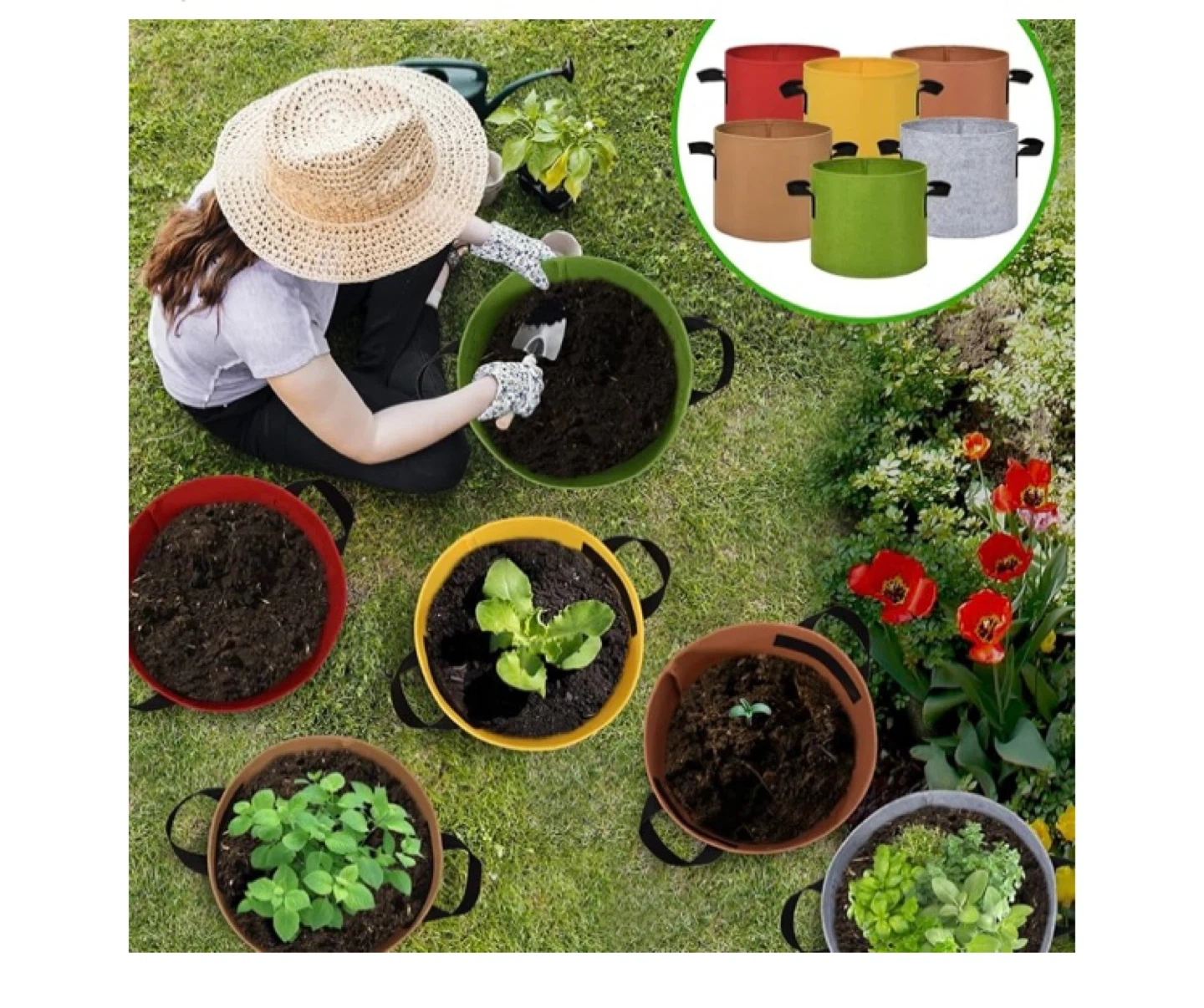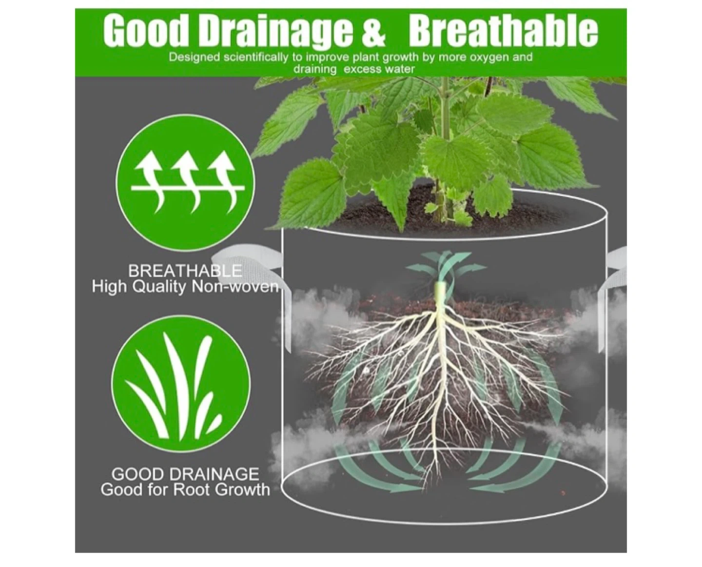 These grow bags are made from extremely durable non-woven fabric. They allow air circulation for healthy roots and excess moisture drains away. These are great for anyone looking to start gardening, even in small spaces!